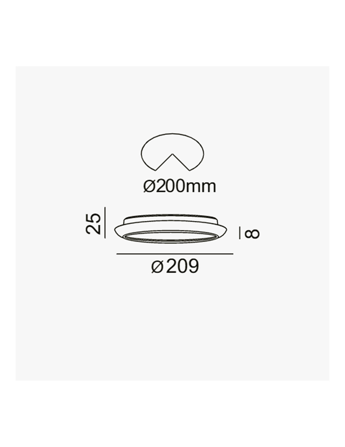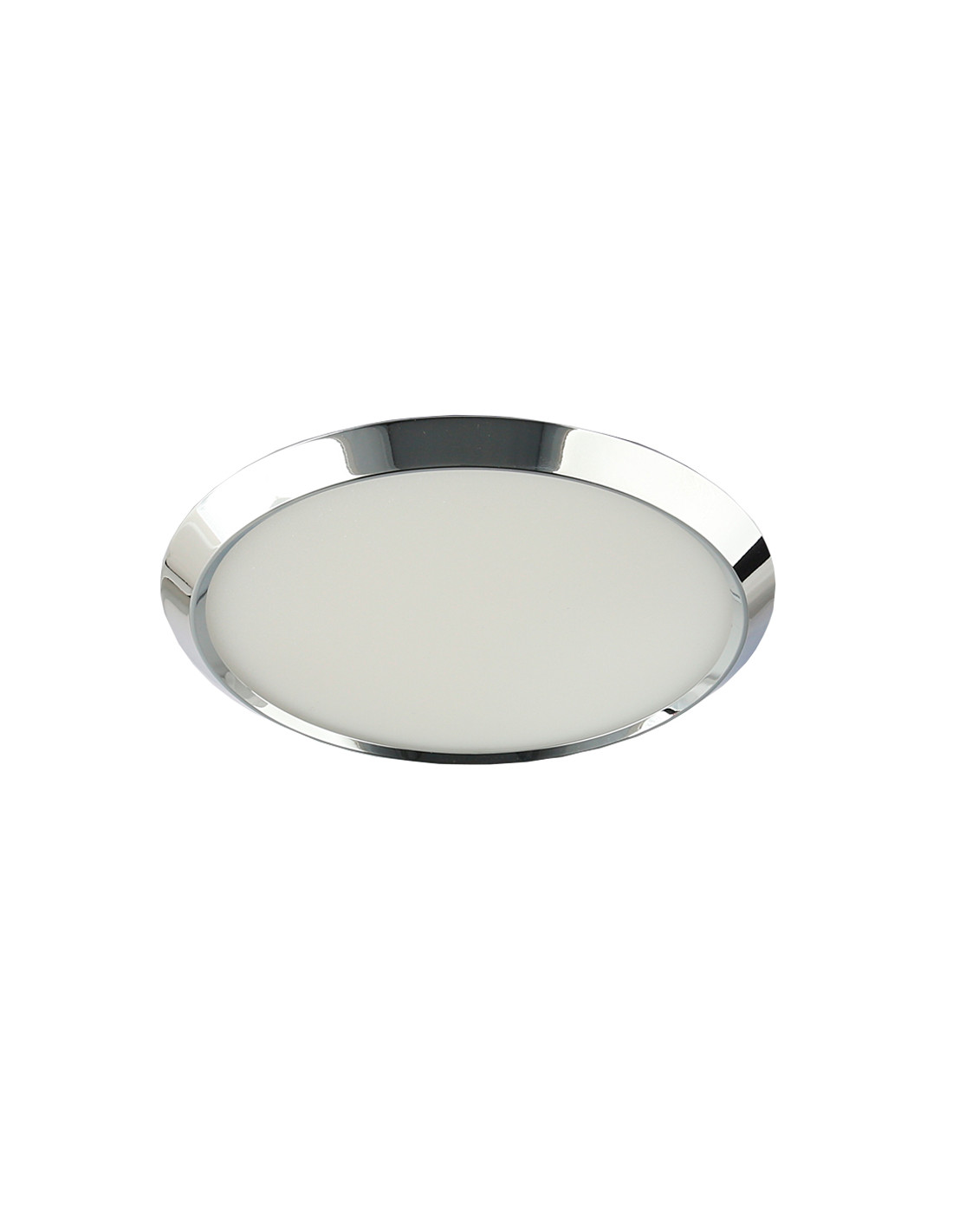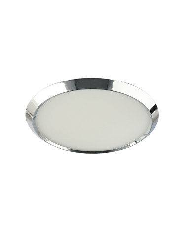 Downlight con aro metálico cromado y difusor en policarbonato blanco. Potencia 23W - Diámetro/corte 200mm - Diámetro exterior 209mm