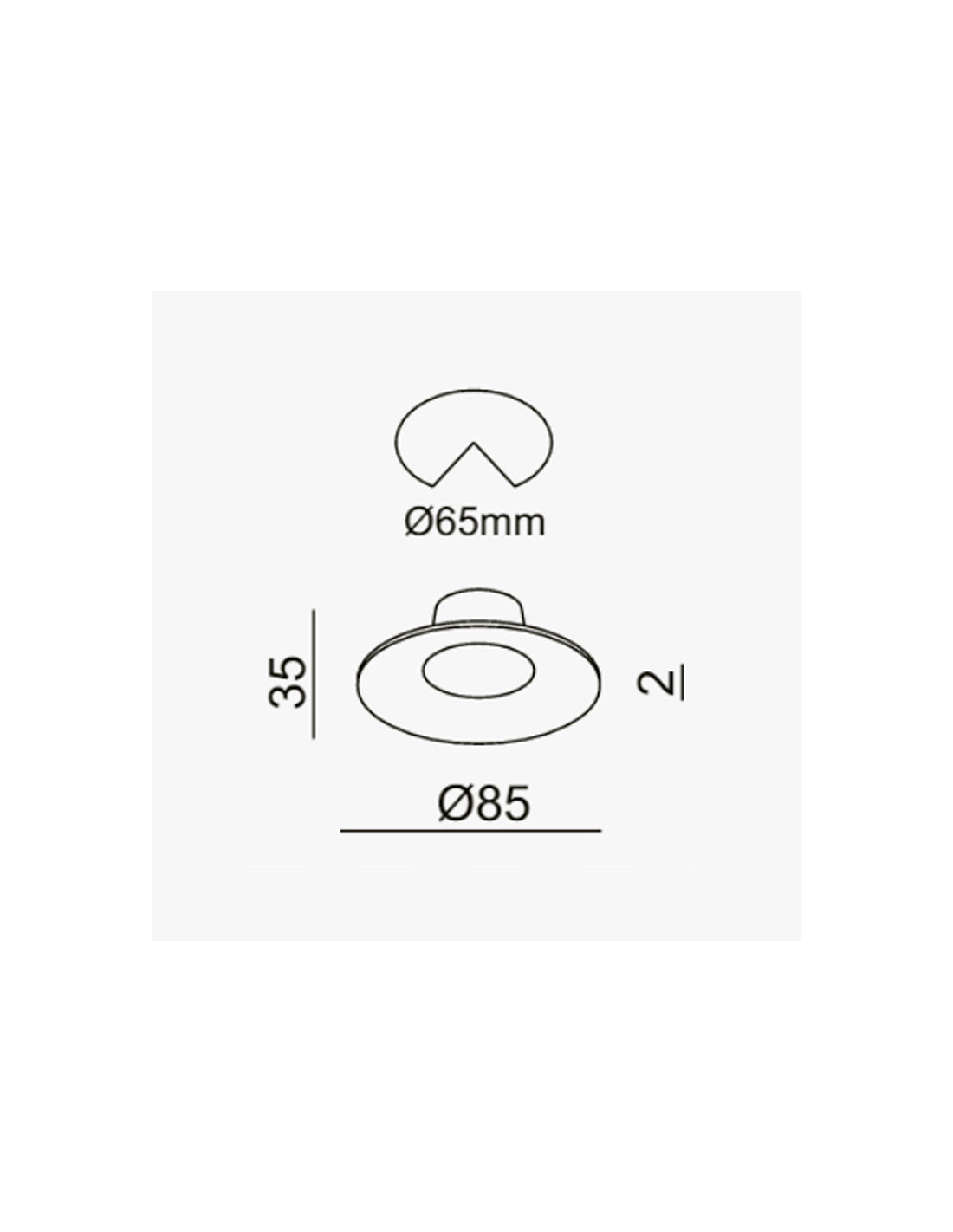 Luminaria empotrable redonda de 5W, construído en metal blanco mate. Diámetro de corte 55mm - diámetro total 85mm.