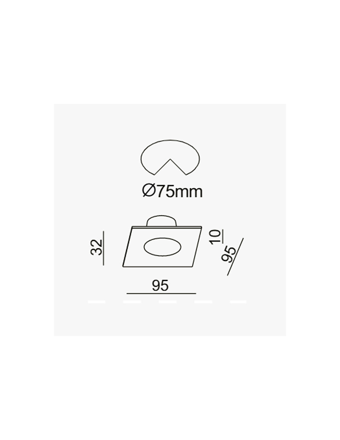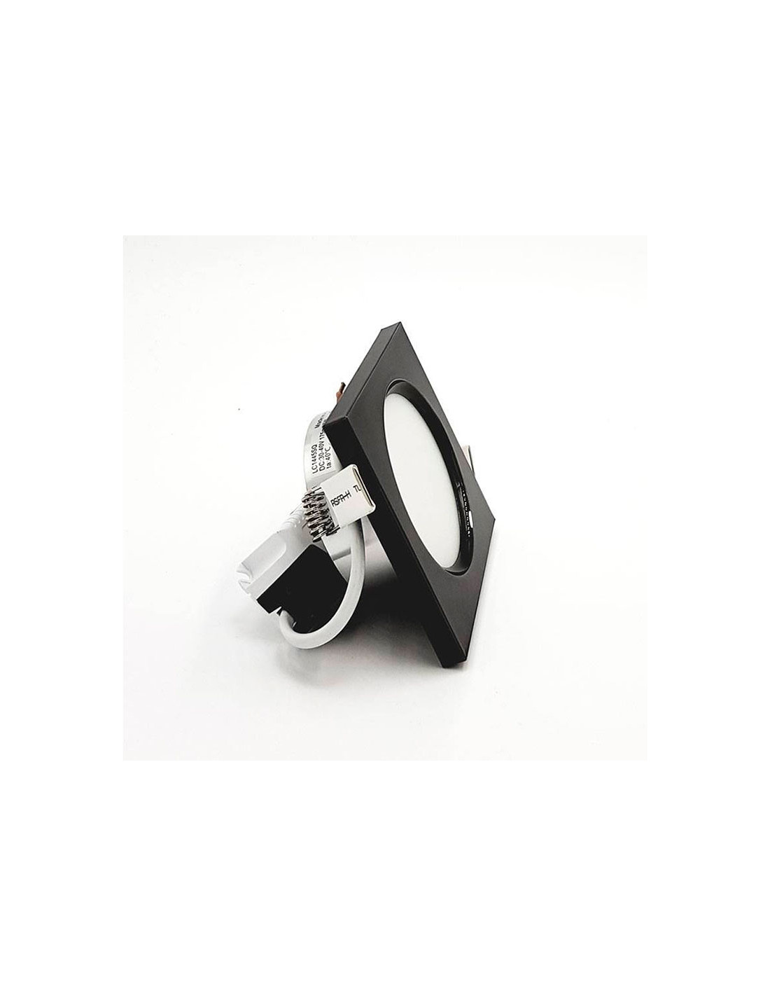 Luminaria empotrable cuadrada de 7W, construído en metal acabado en grafito brillante con difusor en policarbonato blanco Diámetro de corte 75mm - Medida de lado 95mm - alto 32mm
