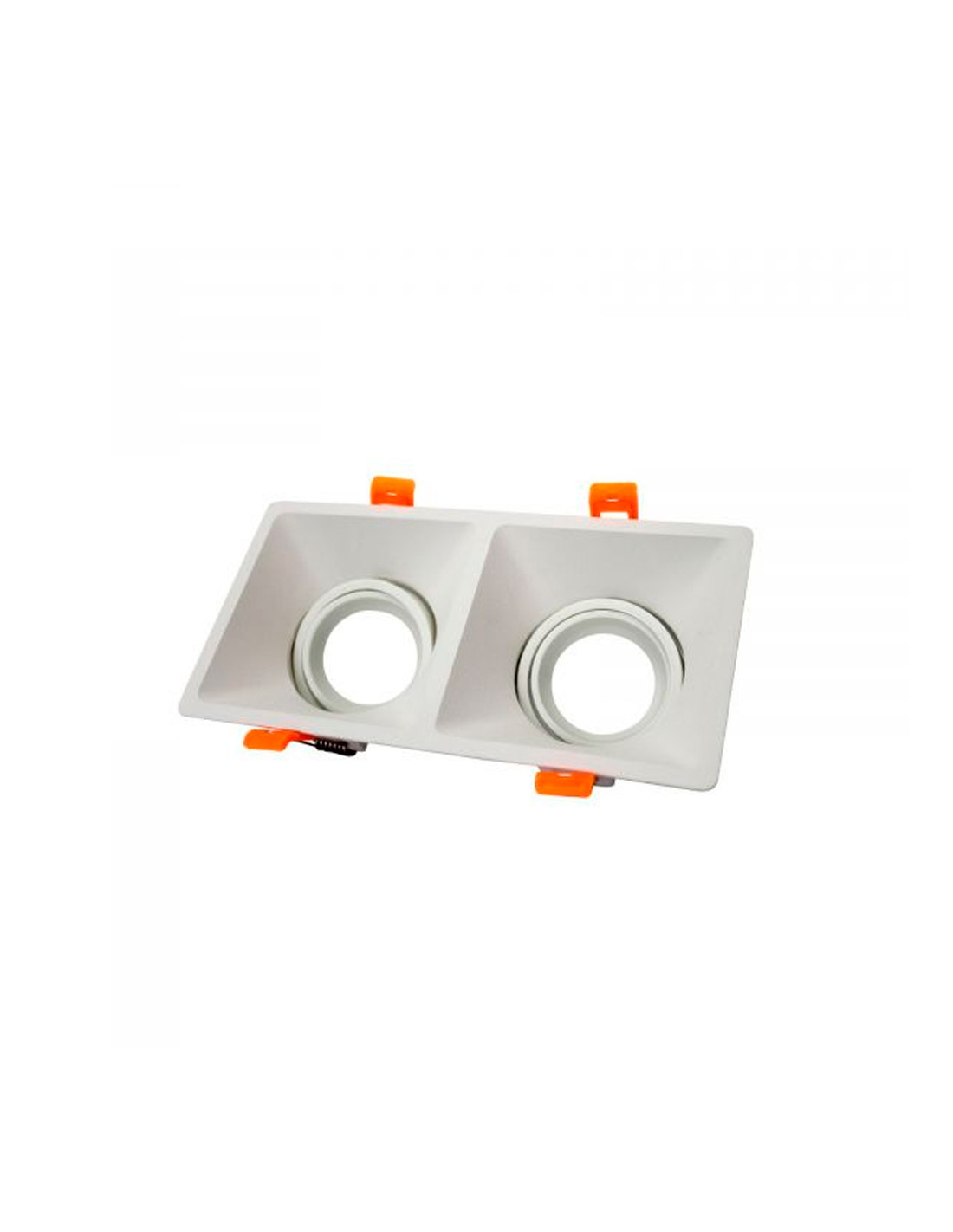 Luminaria doble para empotrar, orientable antideslumbrante, construida en aluminio para bombillas GU10 (no incluidas).