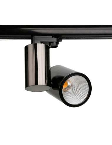 Foco de carril con máxima reproducción cromática CRI>97 con 35W de potencia. Perfecto para exhibir todo tipo de productos por su potencia y calidad de color. Se utiliza en tiendas, museos, galerías de arte, etc.