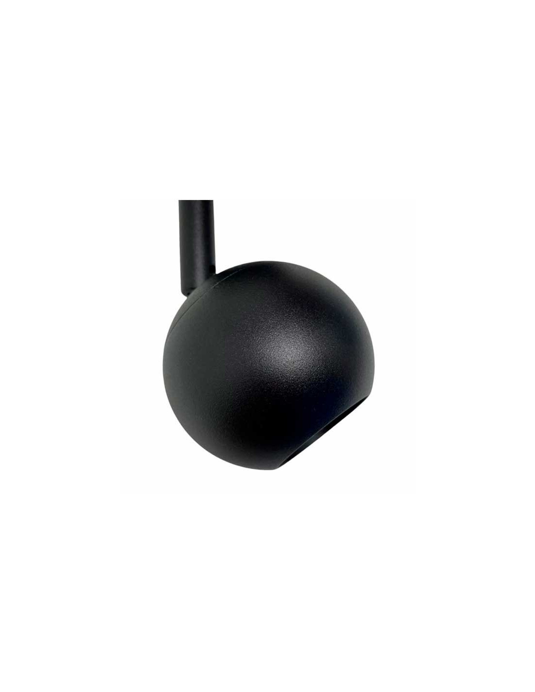 Foco Mini esfera orientable de carril trifásico color negro con LED Bridgelux de 10W y 1000 lm en 3000K. Cuenta con un Índice de Resplandor UGR13 y un Índice de Relación cromática >CRI 93.