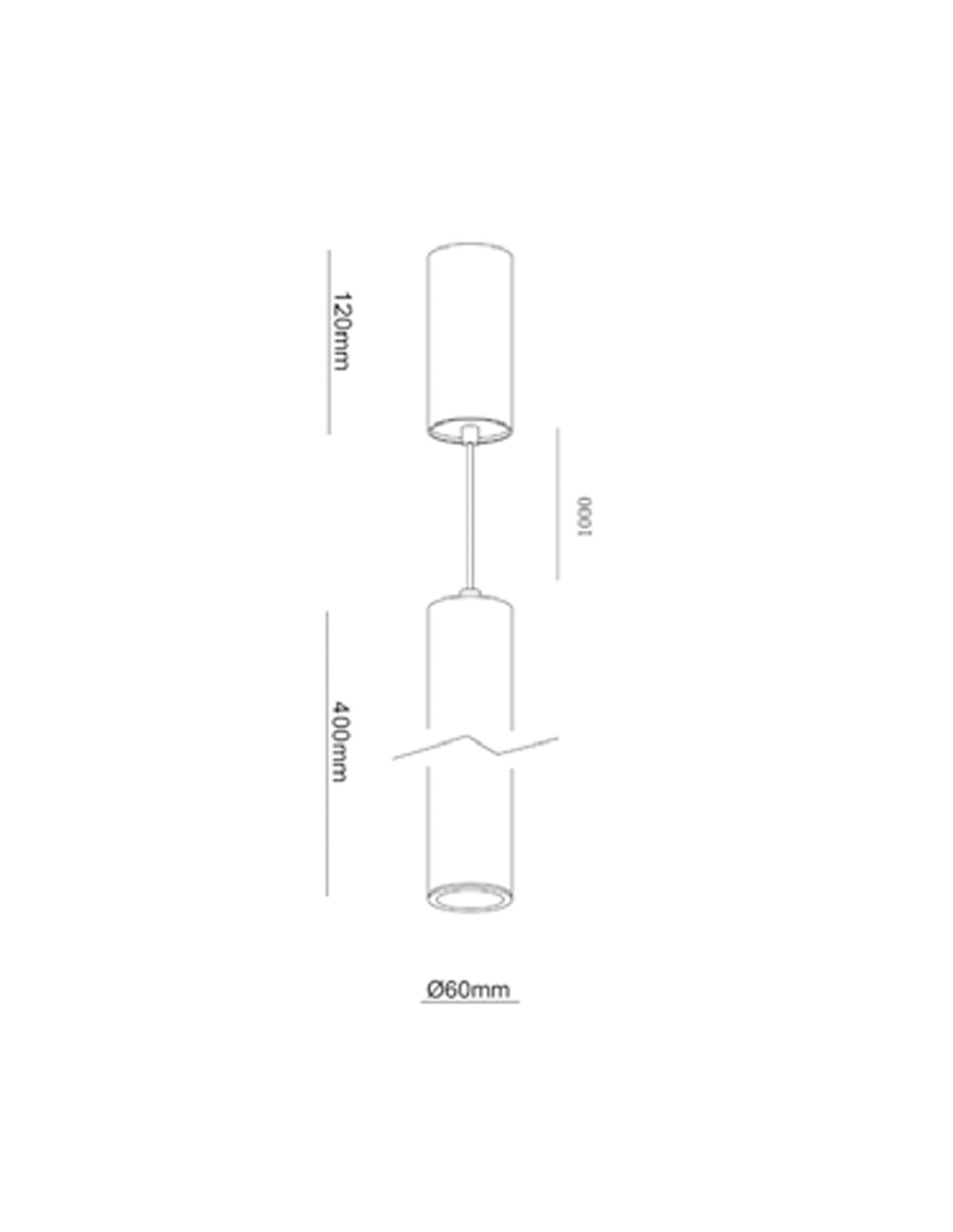 Colgante tipo cilindro construído en aluminio para bombilla GU10 (no incluida).
