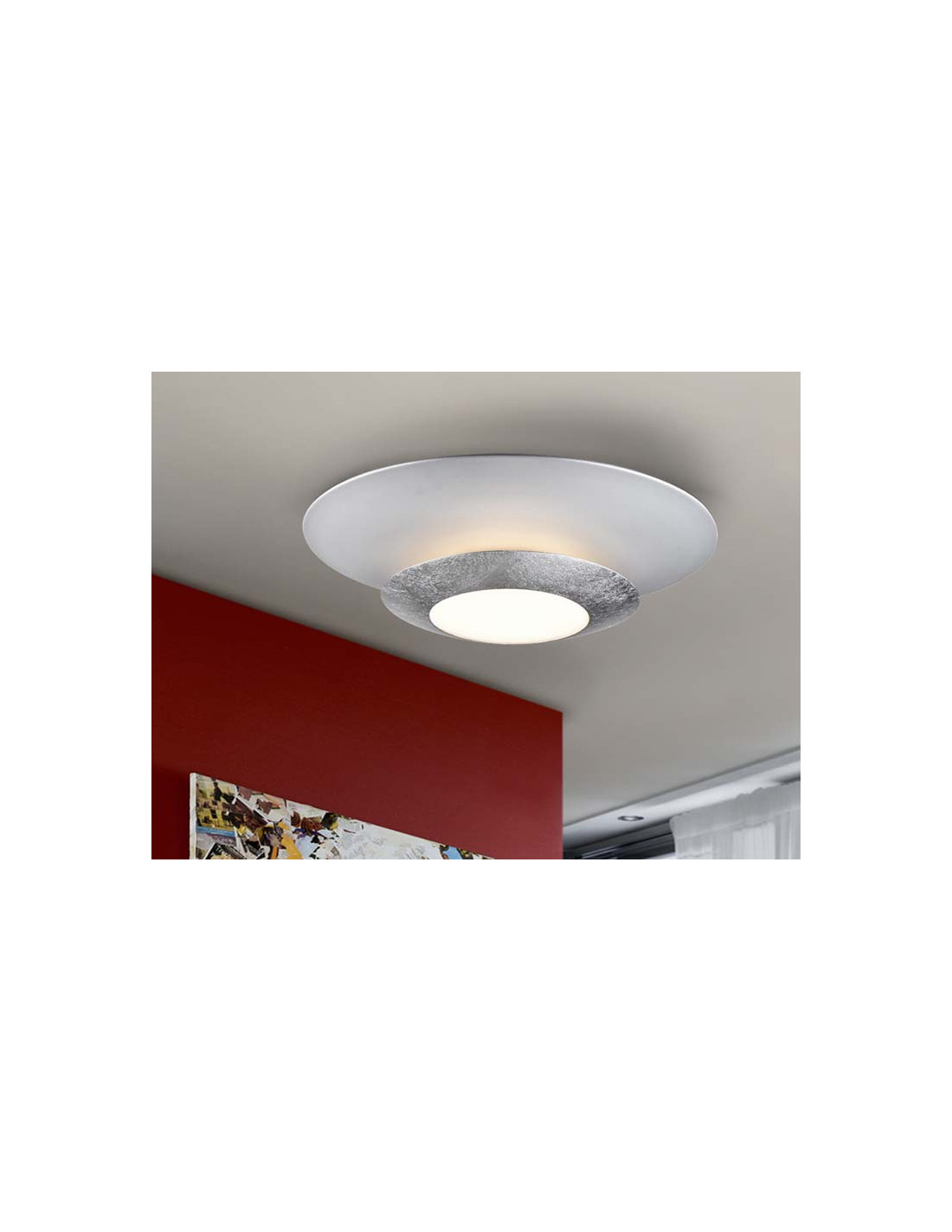 Plafón de iluminación LED, realizado en metal acabado blanco roto mate. Aro inferiorcon difusor acrílico opal. 22,5W LED. 2.025 lm. 3.000 K. 22,5W