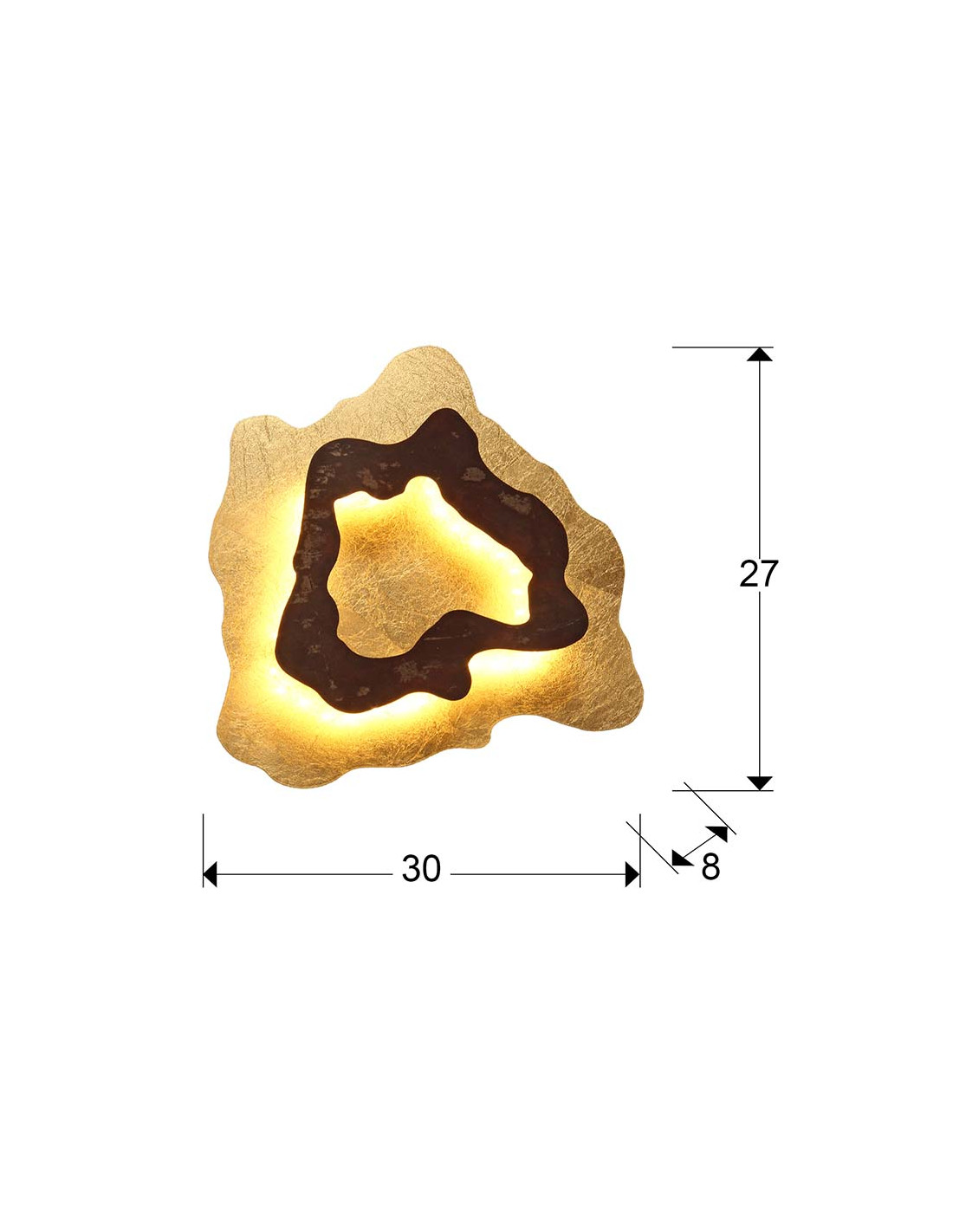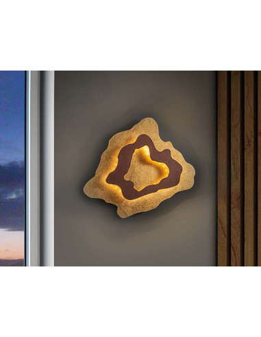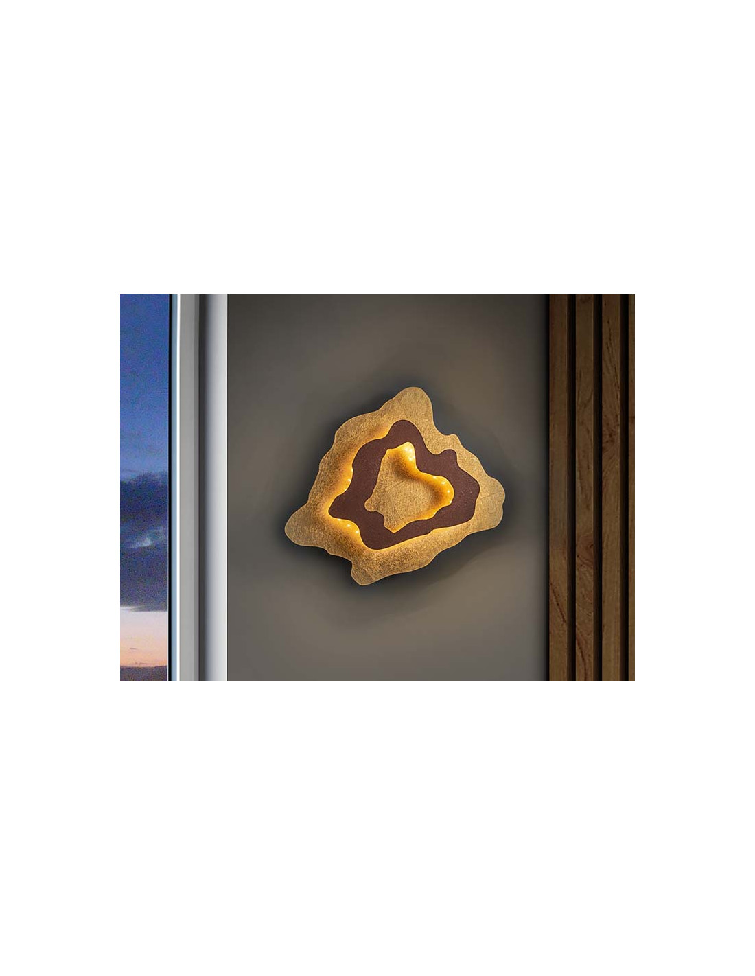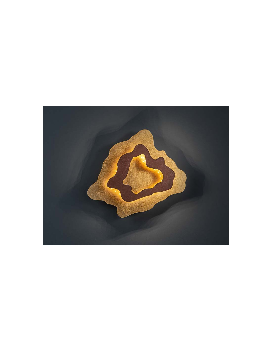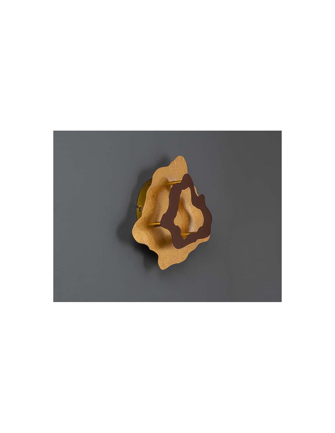 Aplique realizado en metal acabado PAN DE ORO y acero COR-TEN marrón óxido. 11W LED. 635 lm. 3000 K. 11W