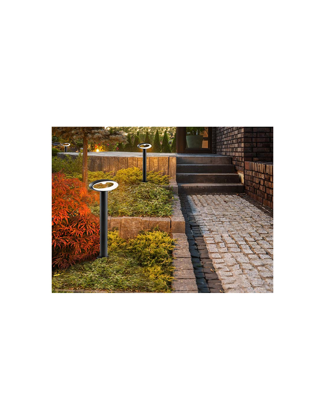Baliza de luz grande para exterior. Realizada en aluminio fundido en acabado gris oscuro. Difusor: Difusor acrílico opal. Indice protección: IP65. 8W LED, 361 lm, 3.000 K. 8,1W