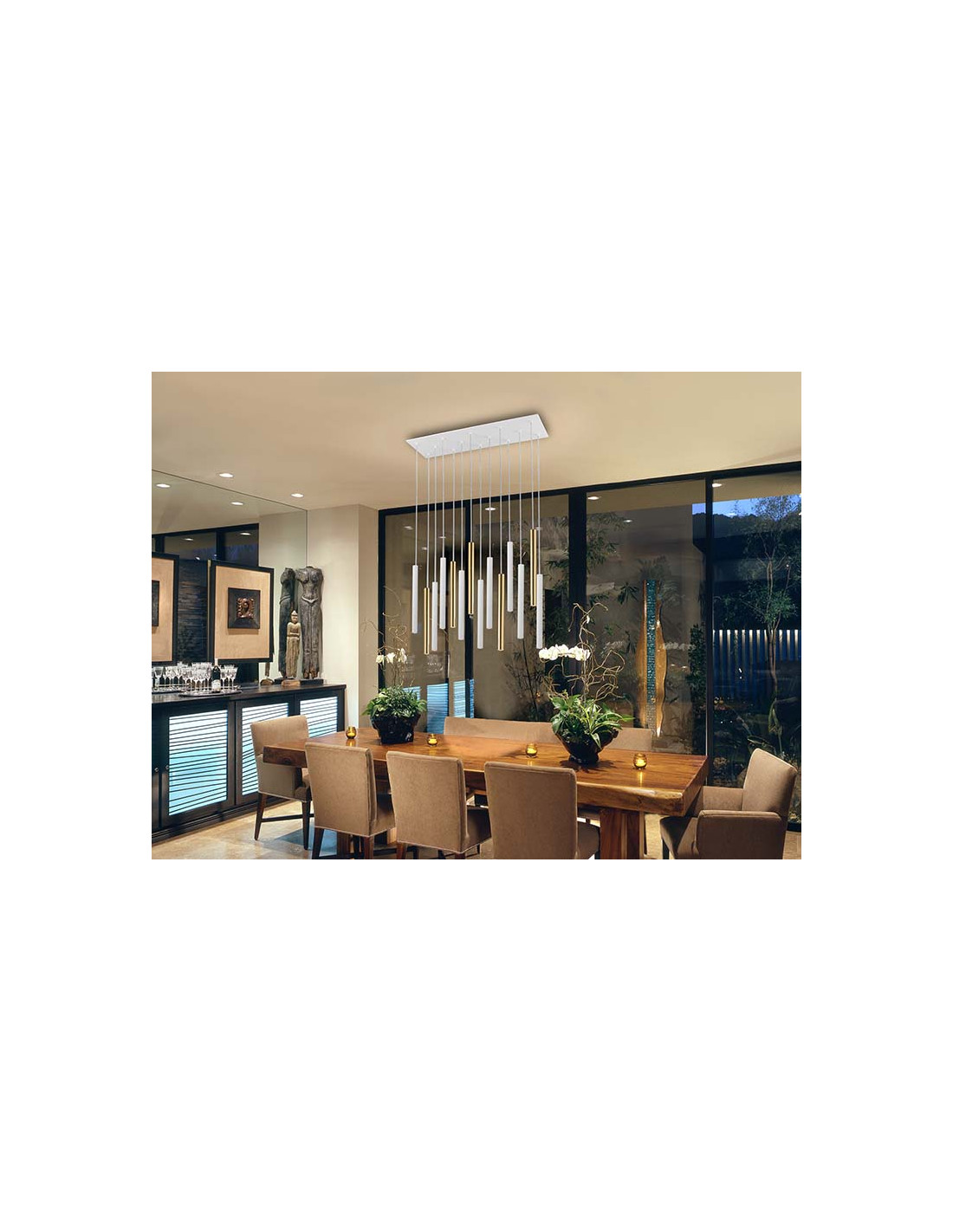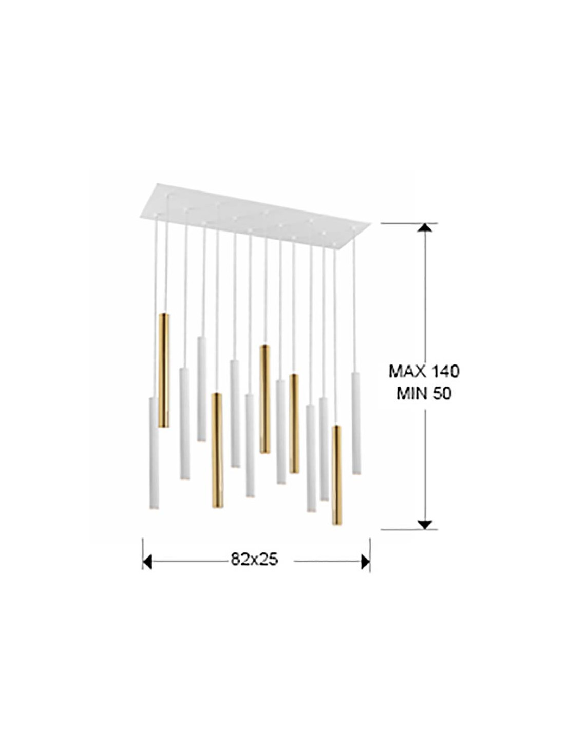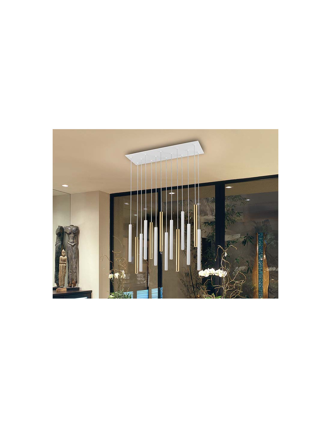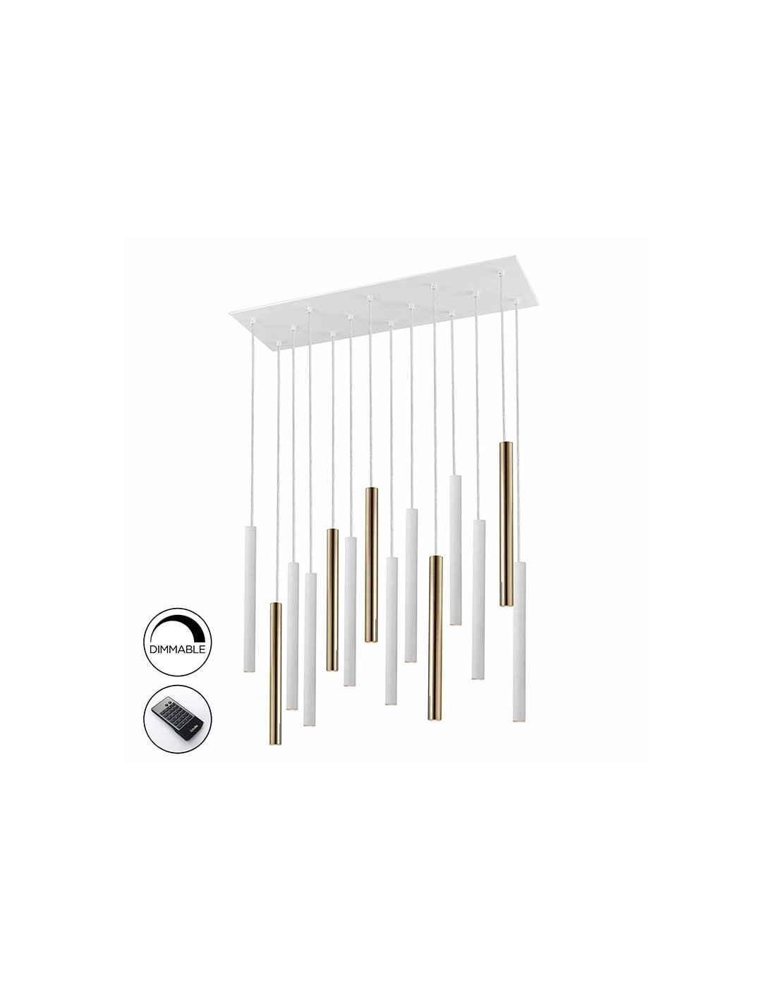 Lámpara de 14 luces LED. Realizada en metal. Difusor acrílico opal. 70W LED, 6,300 lm, 3.000 K. DIMABLE. Incluye mando a distancia. 70W