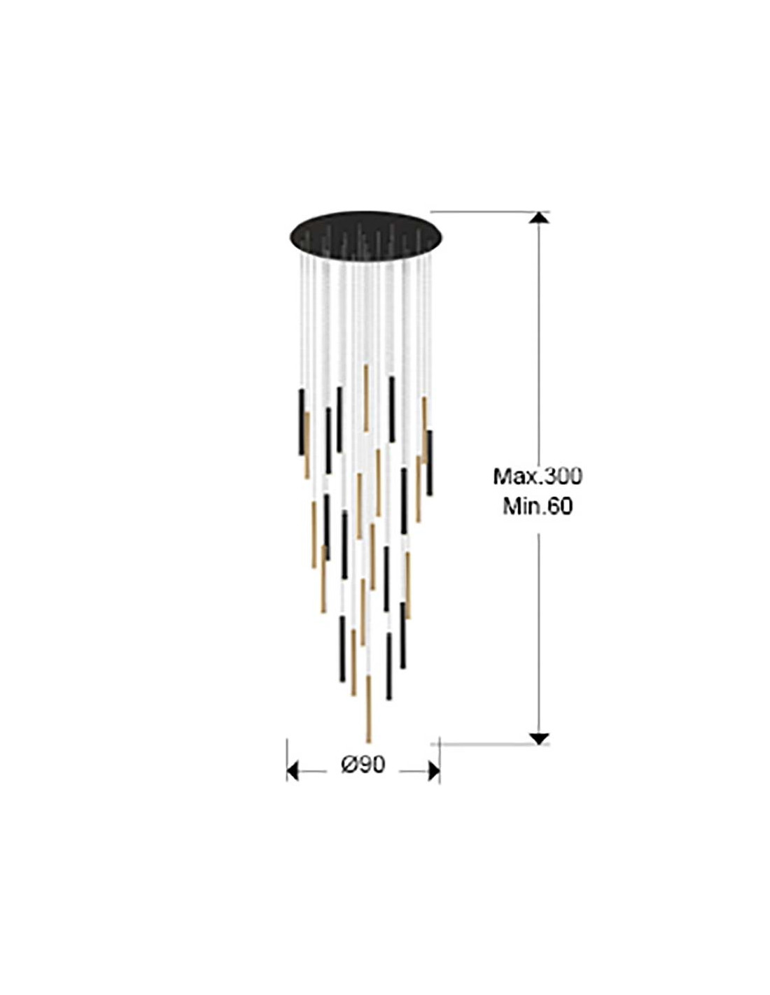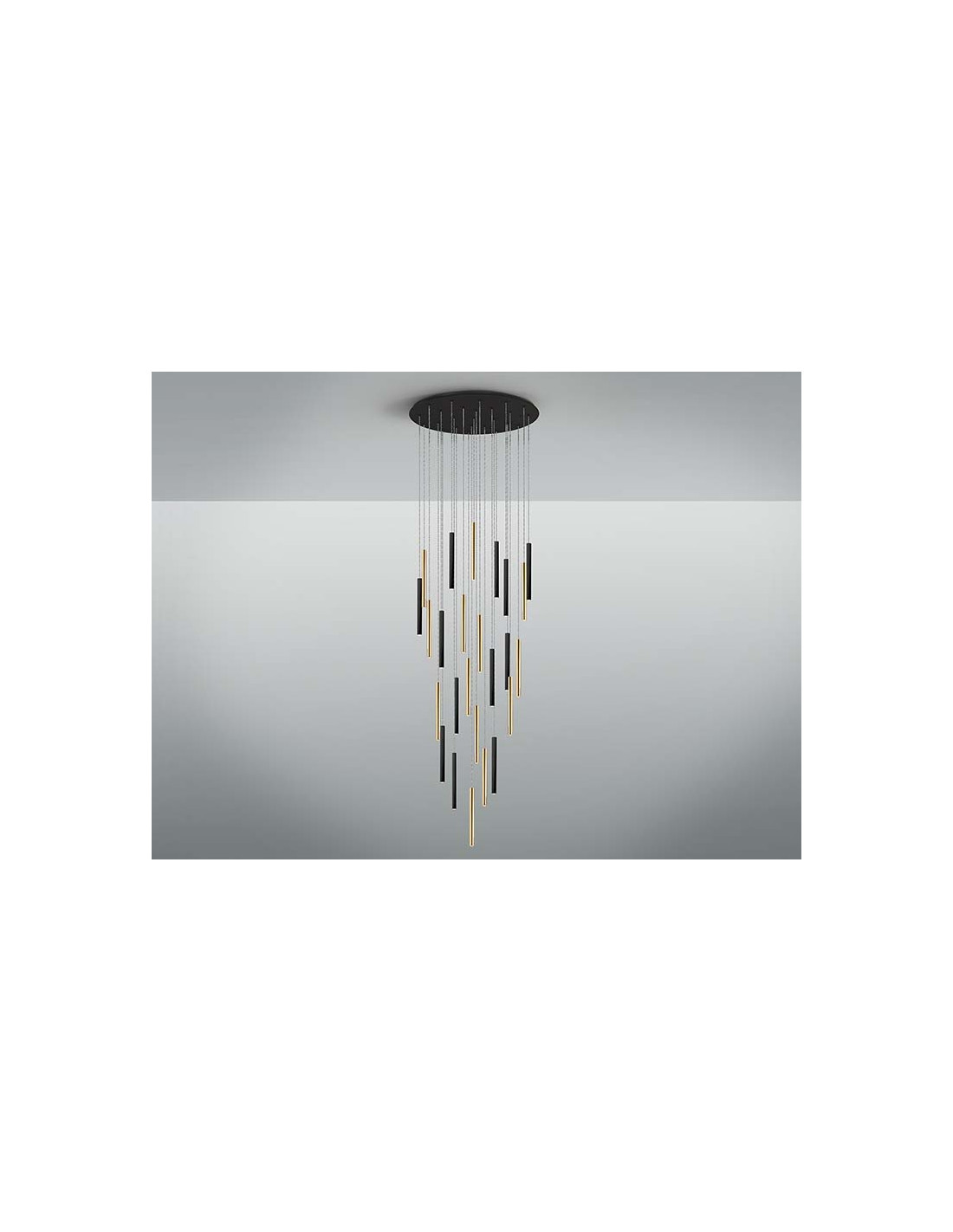 LÁMPARA VARAS ORO Y NEGRO 25 LUCES DIMABLE