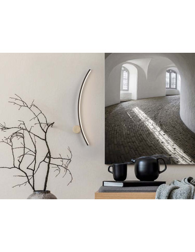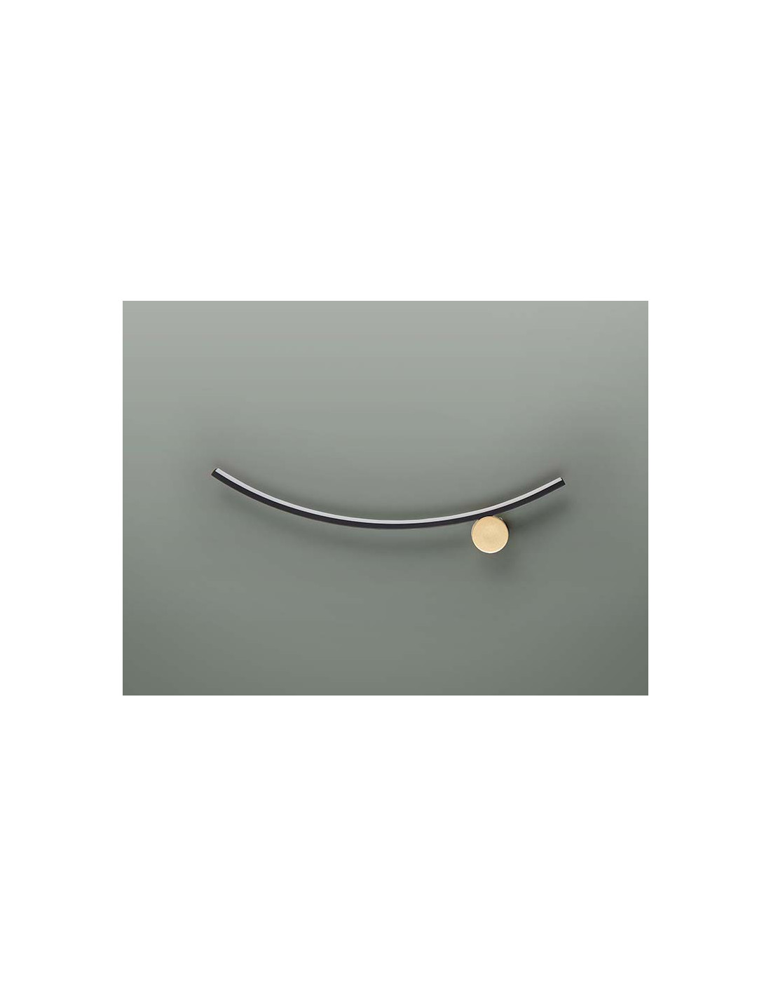 Lámpara de pared realizada en metal, acabado negro mate y oro. Difusor acrílico opal. 8W LED, 864lm, 3.000K. 8W