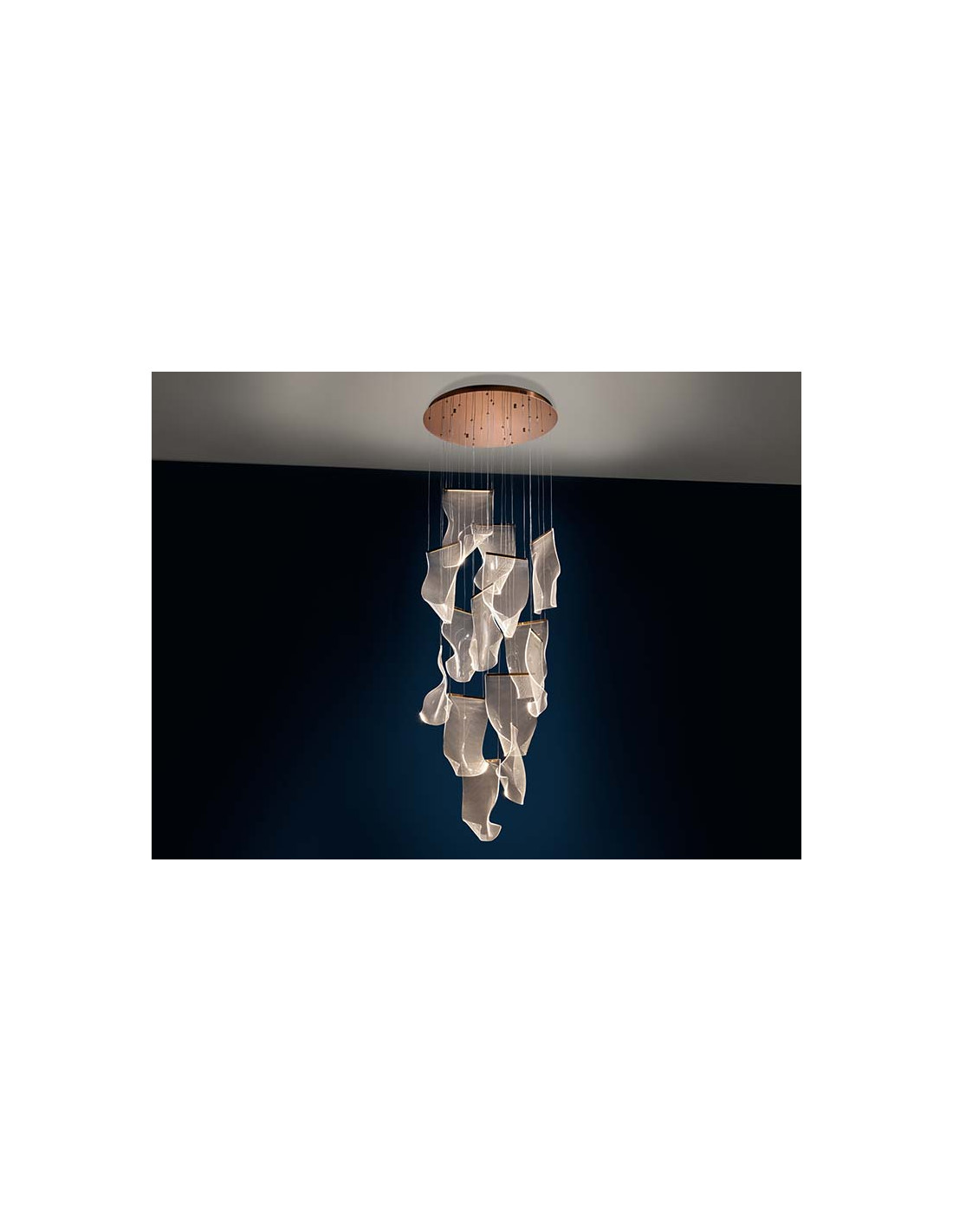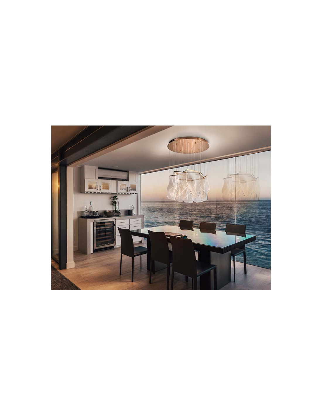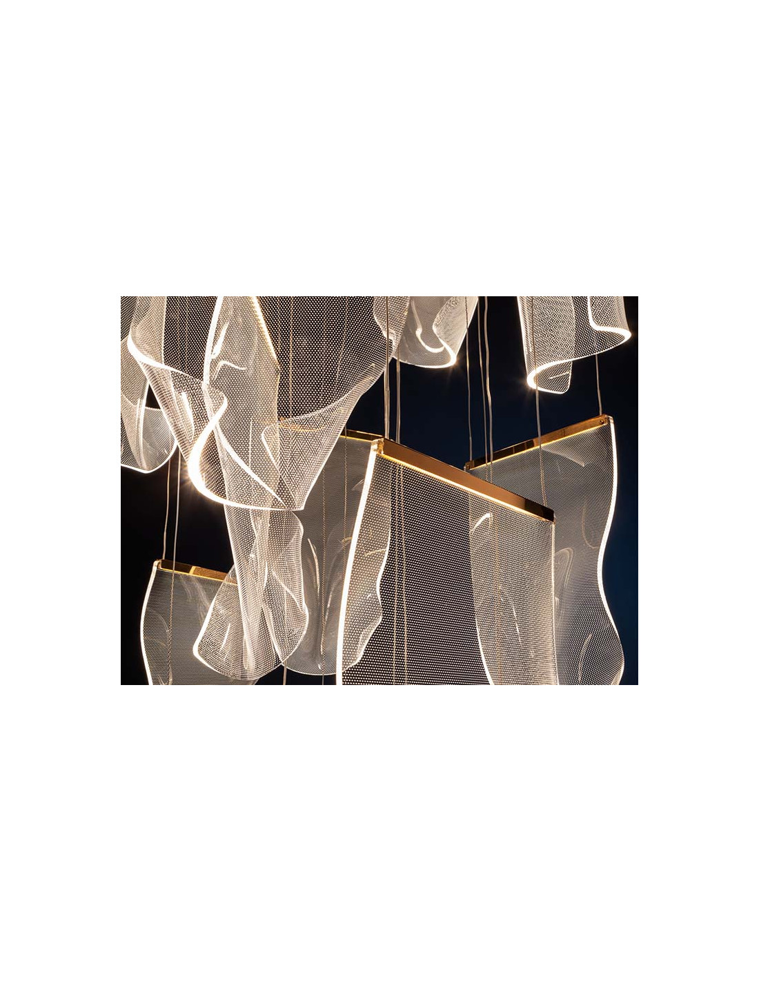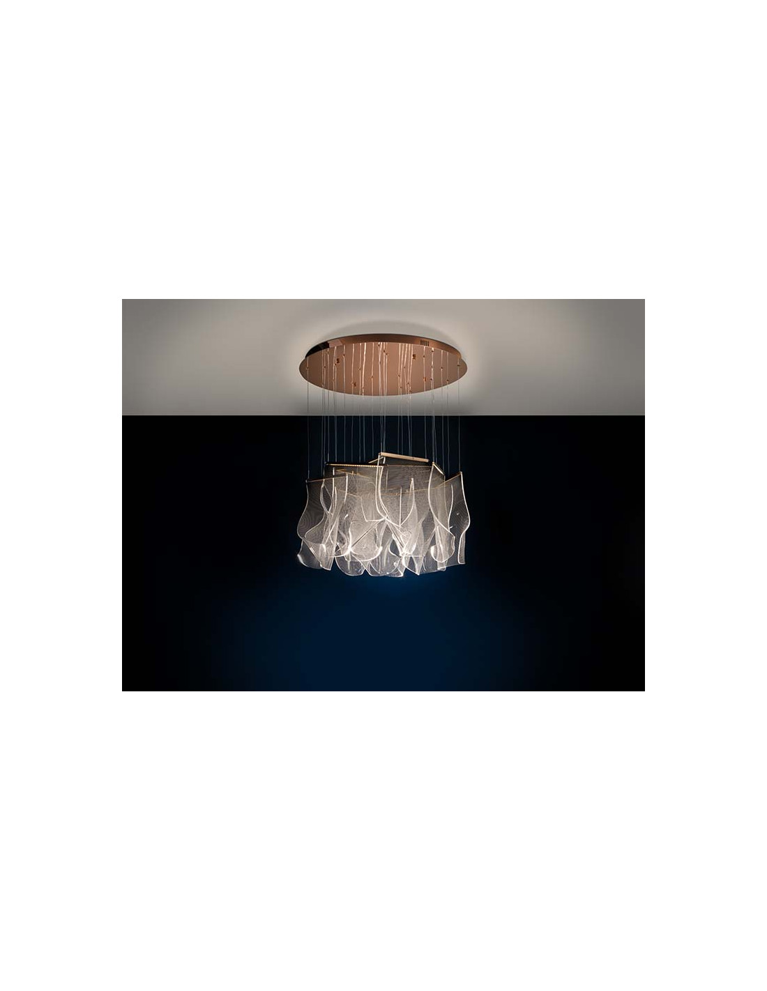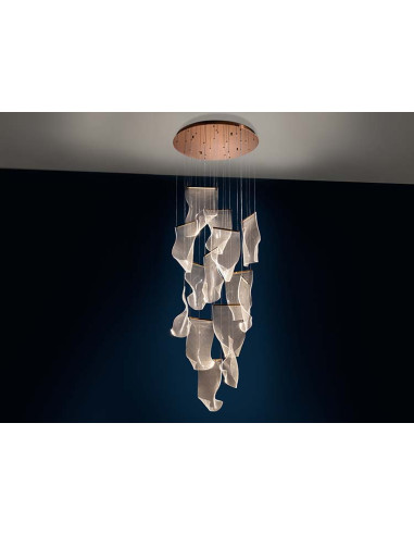 Lámpara realizada en metal color oro rosa, y tulipas de metacrilato microimpreso moldeado. Iluminación LED 33,6W 3.091lm 3.000K. 33,60W