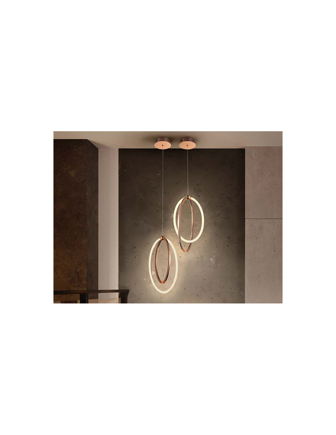 Lámpara LED, realizada en aluminio cepillado, acabado oro rosa. Difusores de silicona opal. Regulable en altura. 22W, 1.980 lm, 3.000 K. 22W