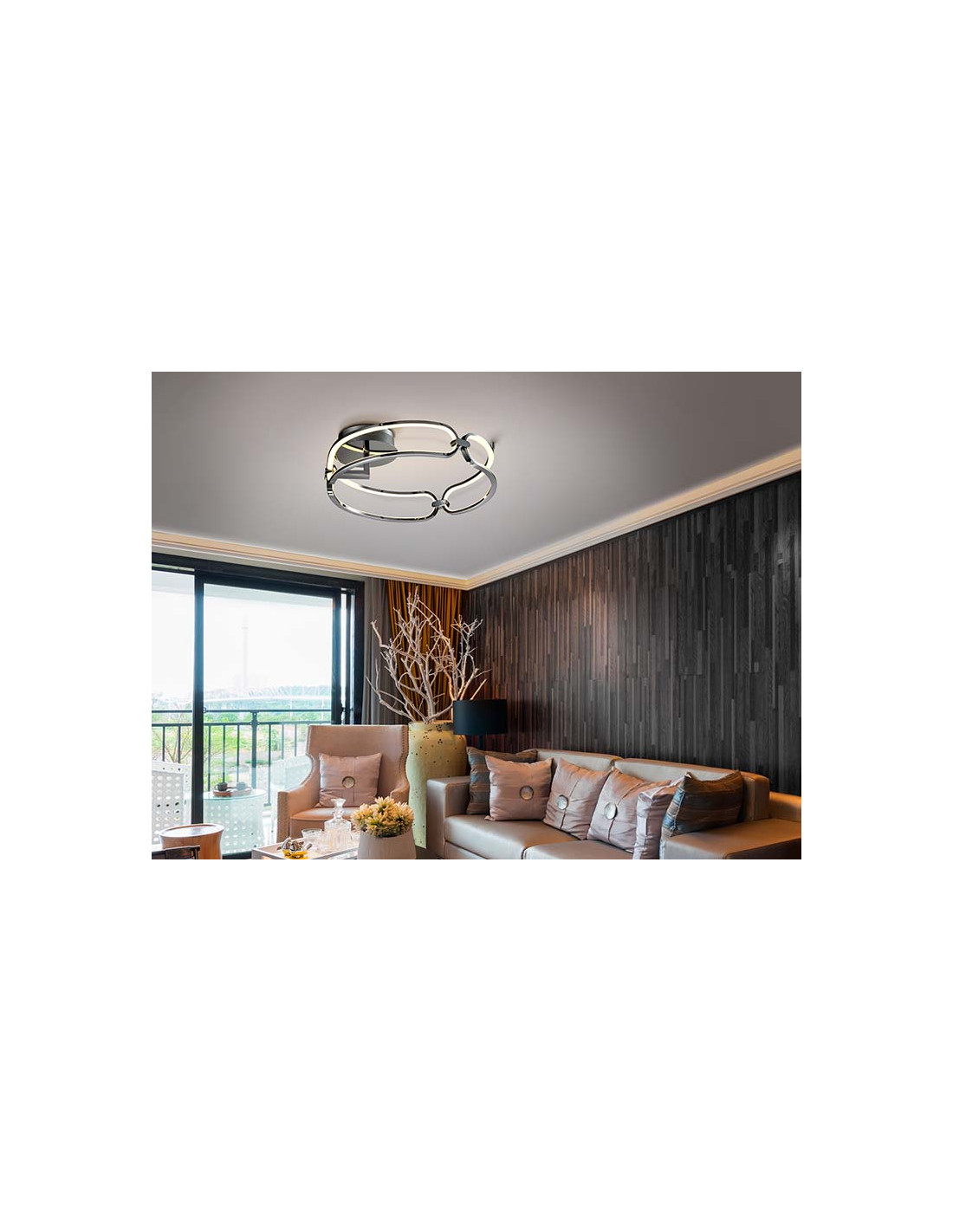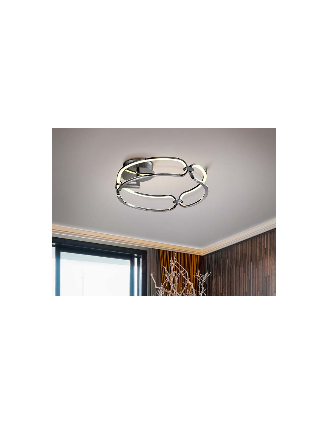 Plafón de techo LED pequeño, realizado en aluminio cepillado. Difusores de silicona opal. 37W LED, 3.330 lm, 3.000 K. DIMABLE. 37W