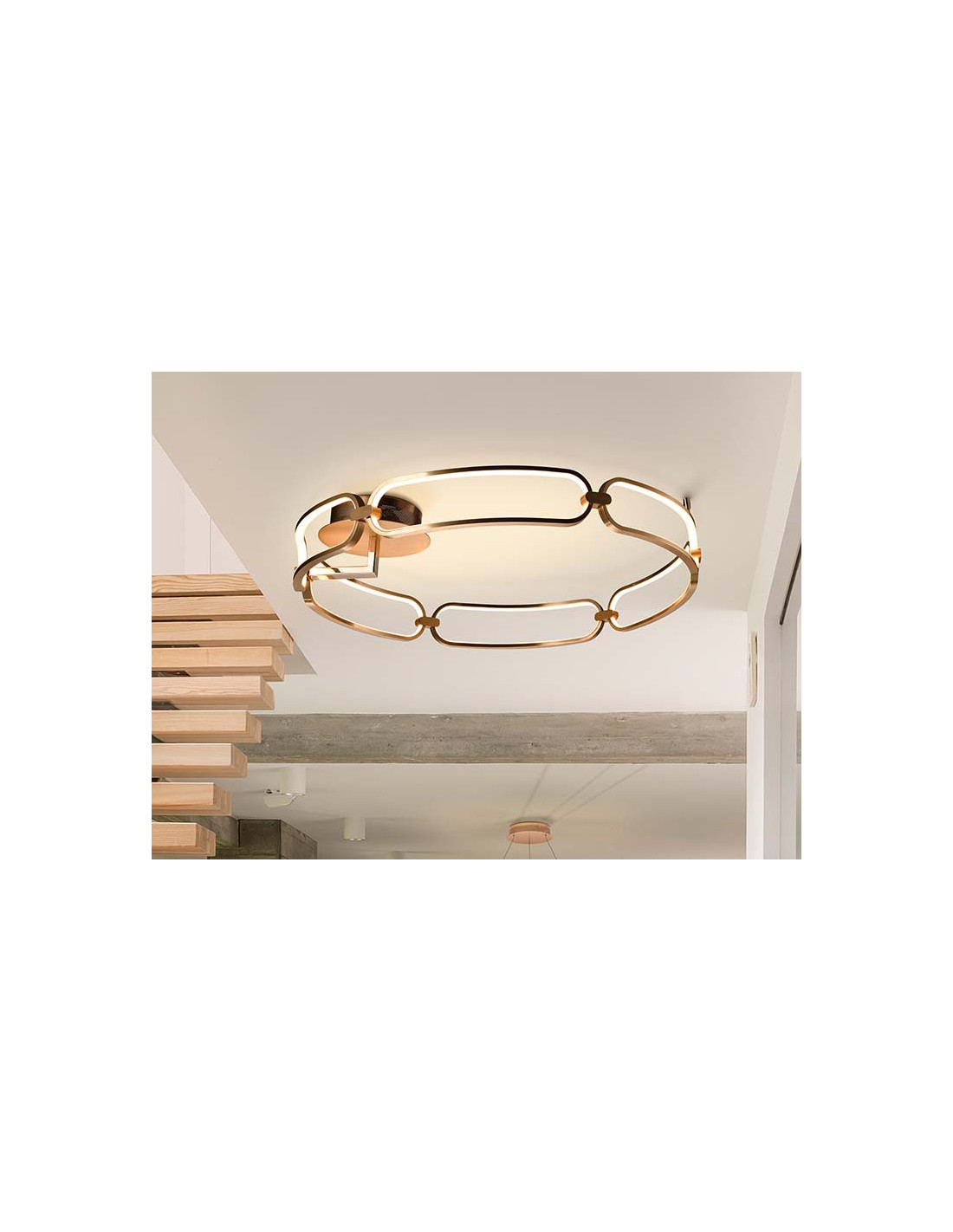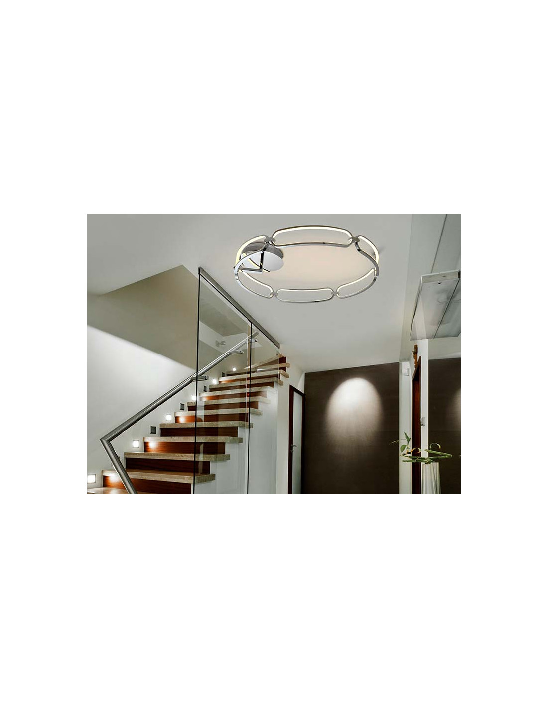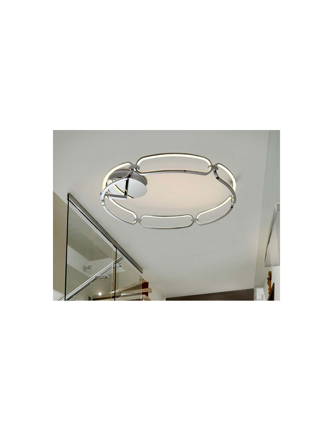 Plafón de techo LED grande, realizado en aluminio cepillado. Difusores de silicona opal. 65W LED, 5.850 lm, 3.000 K. DIMABLE. 65W