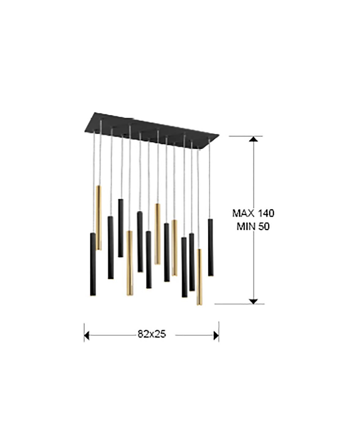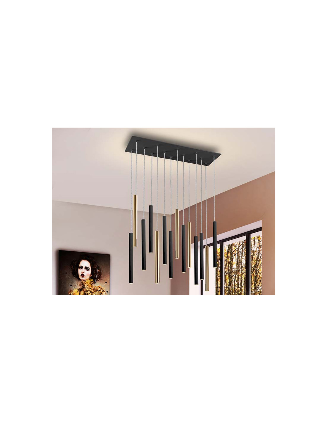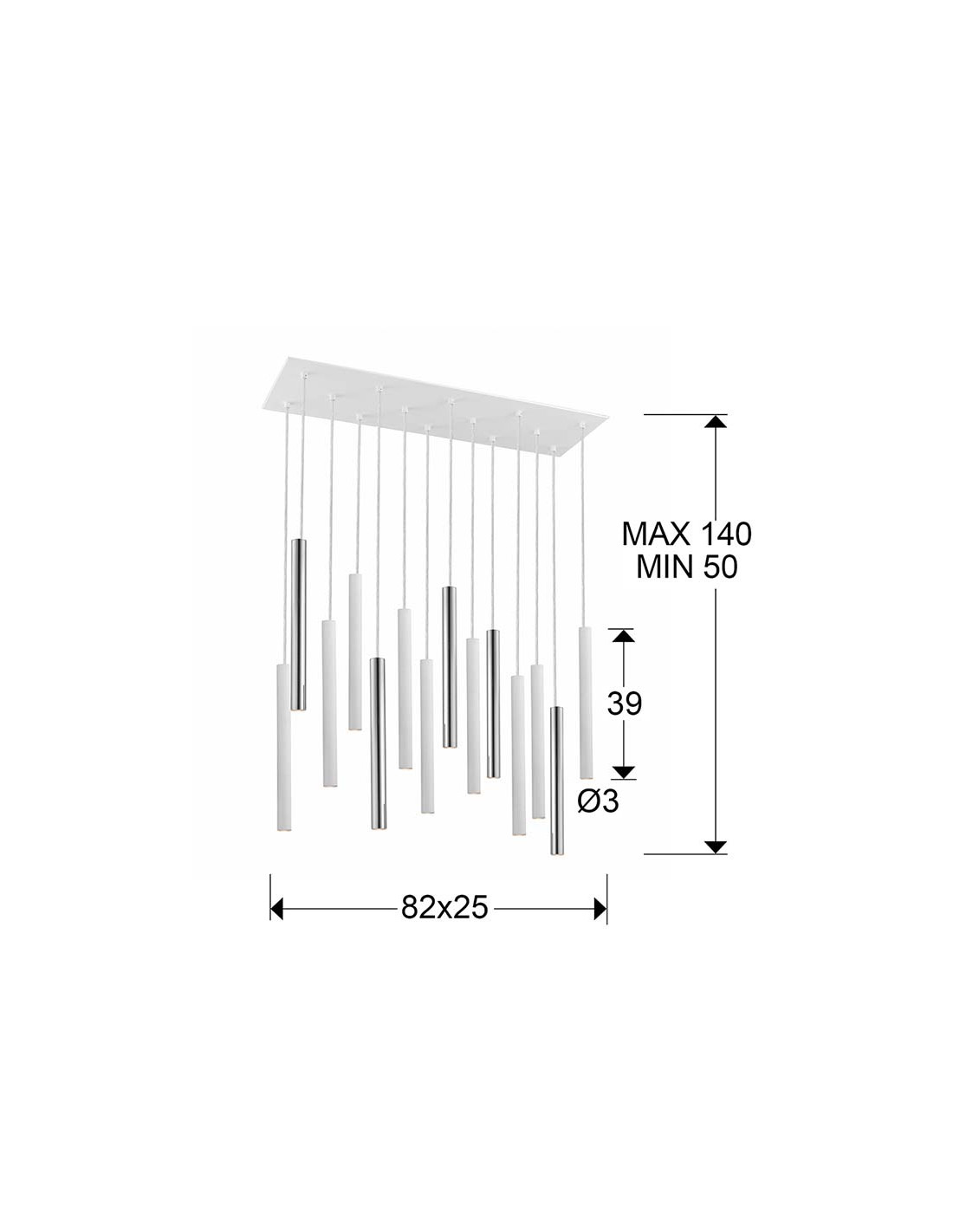 Lámpara de 14 luces LED. Realizada en metal. Difusor acrílico opal. 70W LED, 6,300 lm, 3.000 K. DIMABLE. 70W