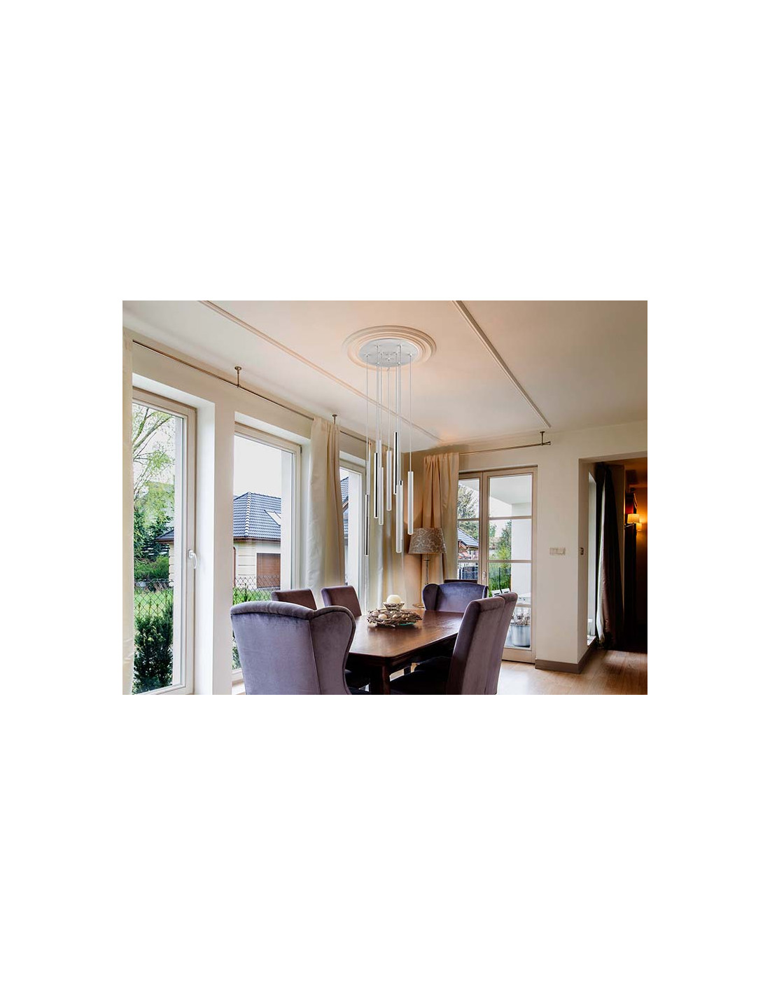Lámpara redonda de 9 luces LED. Realizada en metal. Difusor acrílico opal. 45W LED, 4.050 lm, 3.000 K. DIMABLE. 45W