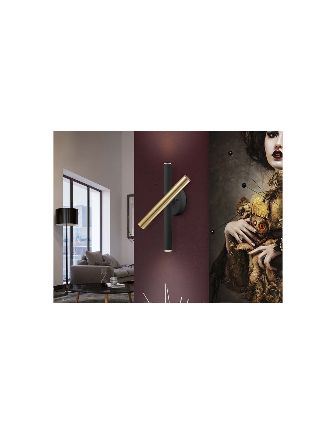Lámpara de pared de 3 luces LED con brazo giratorio. Realizada en metal acabado. Difusor acrílico opal. 15W, 1350 lm, 3.000 K. DIMABLE. 15W