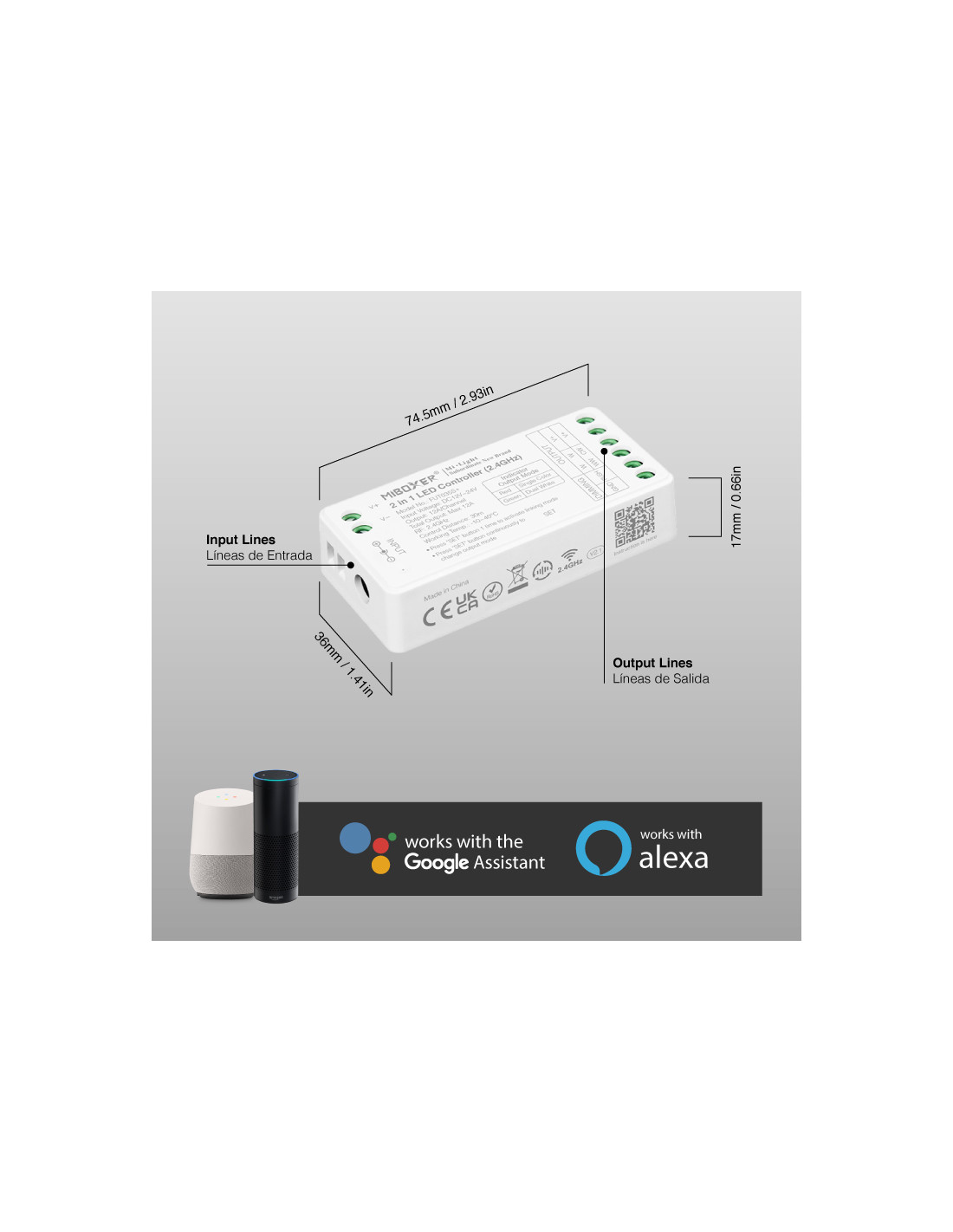 Controlador WIFI LED 2 en 1 Mi-Light 12-24V 12A max 2.4GHz