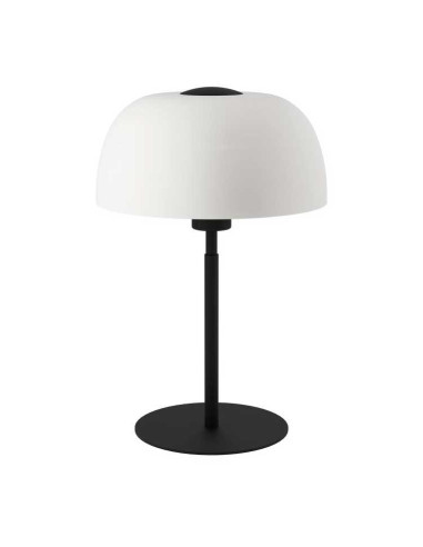 La lámpara de sobremesa SOLO 2 está compuesta por una base de metal en color negro y una pantalla redonda de cristal oxidado en color blanco. Gracias a su diseño moderno, la lámpara de mesa se adapta a casi cualquier estilo y se puede encender y apagar fácilmente con el interruptor del cable. Ofrece una iluminación acogedora en cualquier estancia, ya sea en la mesita de noche en el dormitorio, en el salón o el pasillo. La bombilla no está incluida. La lámpara es apta para cualquier bombilla con casquillo E27.