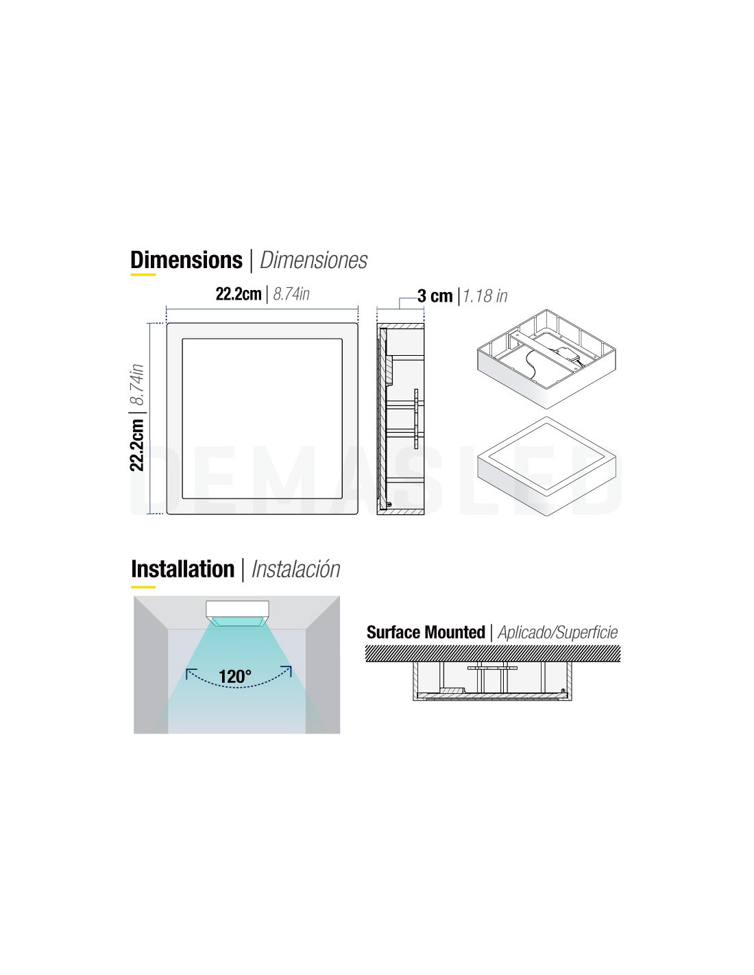 Plafón LED cuadrado de superficie 18W 1440lm 21.3x21.3cm 100-240V