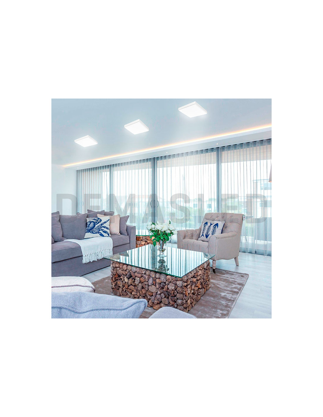 Con un flujo luminoso de 1.870 lúmenes, este plafón LED garantiza una distribución homogénea de la luz, creando un efecto de ventana iluminada perfecto para decorar y crear amplias áreas de iluminación. Su eficiencia energética permite reemplazar plafones incandescentes de hasta 198W, reduciendo el consumo energético y prolongando su vida útil hasta 30.000 horas.