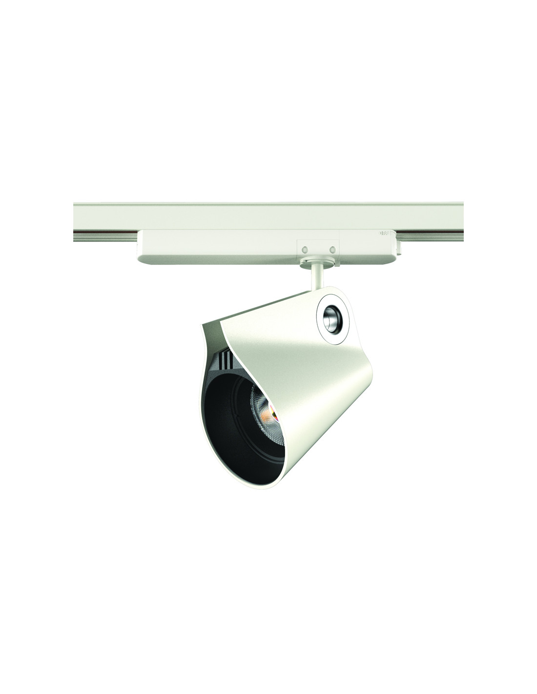 Foco de carril de la familia IPSILON fabricado en Aluminio. Con LED integrado de 35W de potencia. Ajustable en altura.
