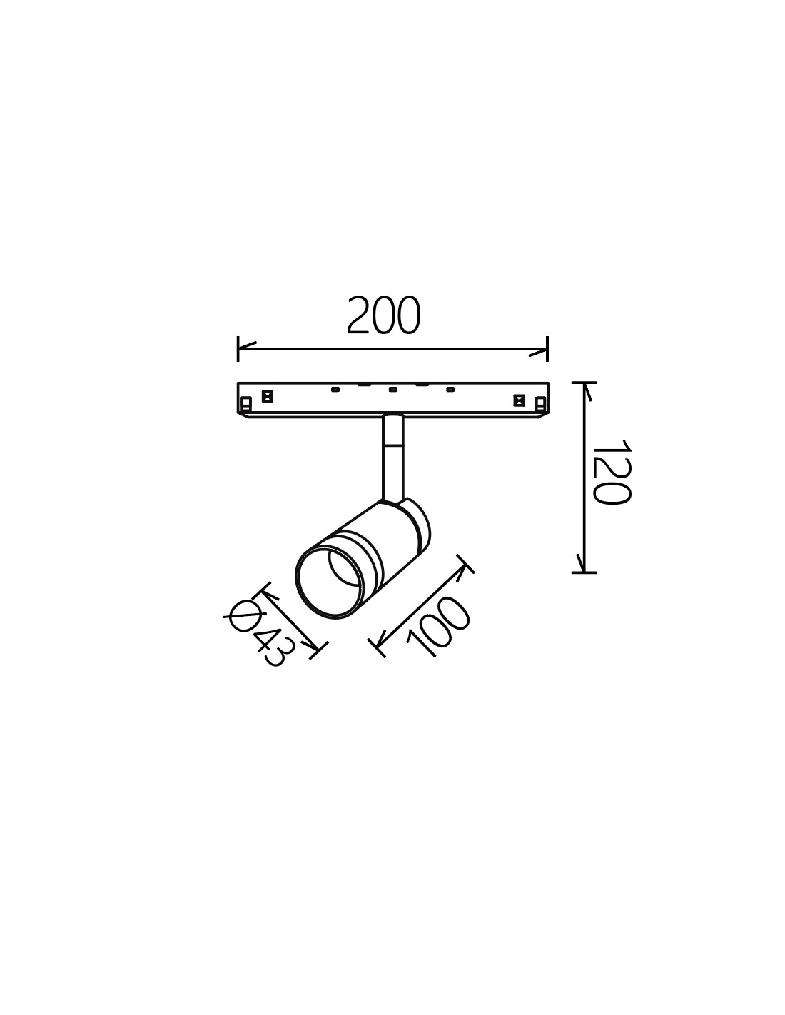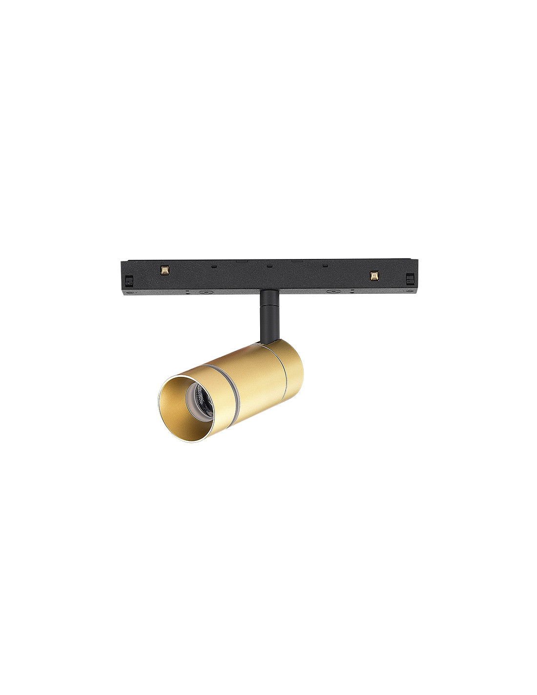 Foco para carril magnético de la familia MAGNETO fabricado en Aluminio. Con LED integrado de 7W de potencia que ofrecen 540lm. en 2700K Blanco Cálido. Dimable. Etiqueta Energética F.