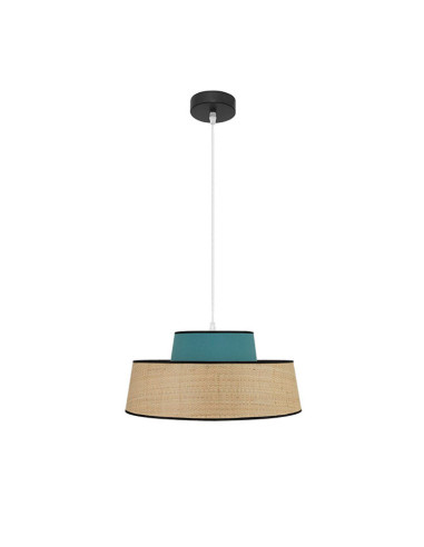 El colgante JIA ofrece un diseño moderno y sencillo con un toque de originalidad, ideal para aportar frescura y sofisticación a cualquier espacio. Fabricado con materiales de alta calidad como metal y textil, este colgante destaca por su acabado natural con detalles en turquesa, perfecto para ambientes como dormitorios, salones, comedores y espacios de trabajo. Su diseño versátil incluye una altura regulable de 47 a 110 cm y un diámetro de 40 cm (disponible también en 50 cm), adaptándose a diferentes tipos de techo y configuraciones.