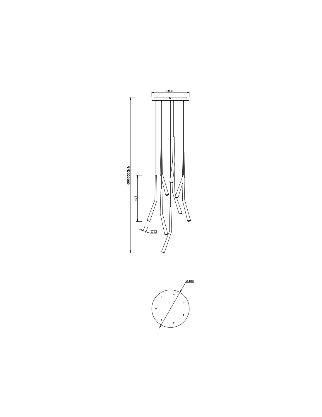 Lámpara de techo de la familia BOOMERANG fabricada en Aluminio, hierro y acrílico. Ajustable en altura.