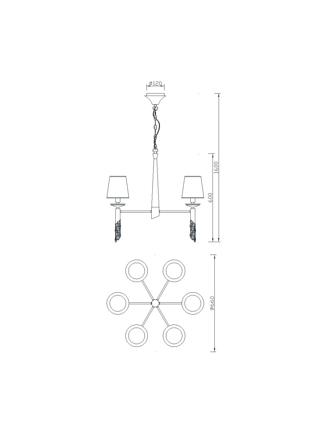 Lámpara de techo de la familia TIFFANY fabricada en Metal, cristal y tela. Con pantalla Tela Blanco. Para 6 bombillas E14 (No incluidas). Ajustable en altura.