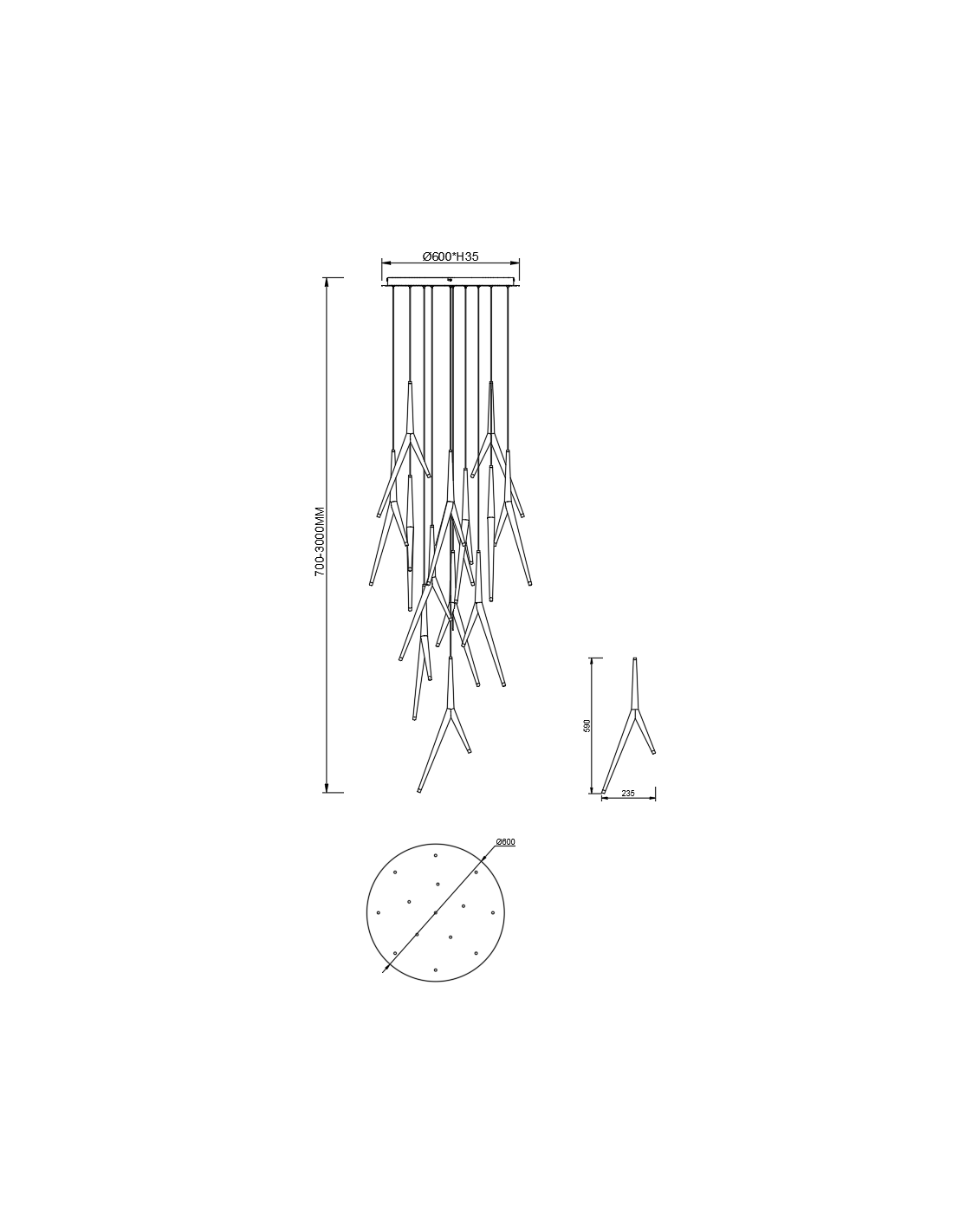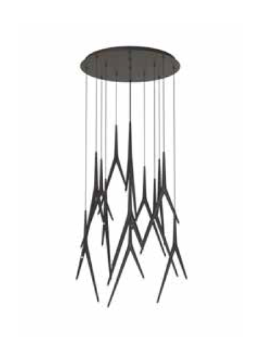 Lámpara de techo de la familia ARRECIFE fabricada en Aluminio, hierro y acrílico con acabado en Negro. Ajustable en altura.