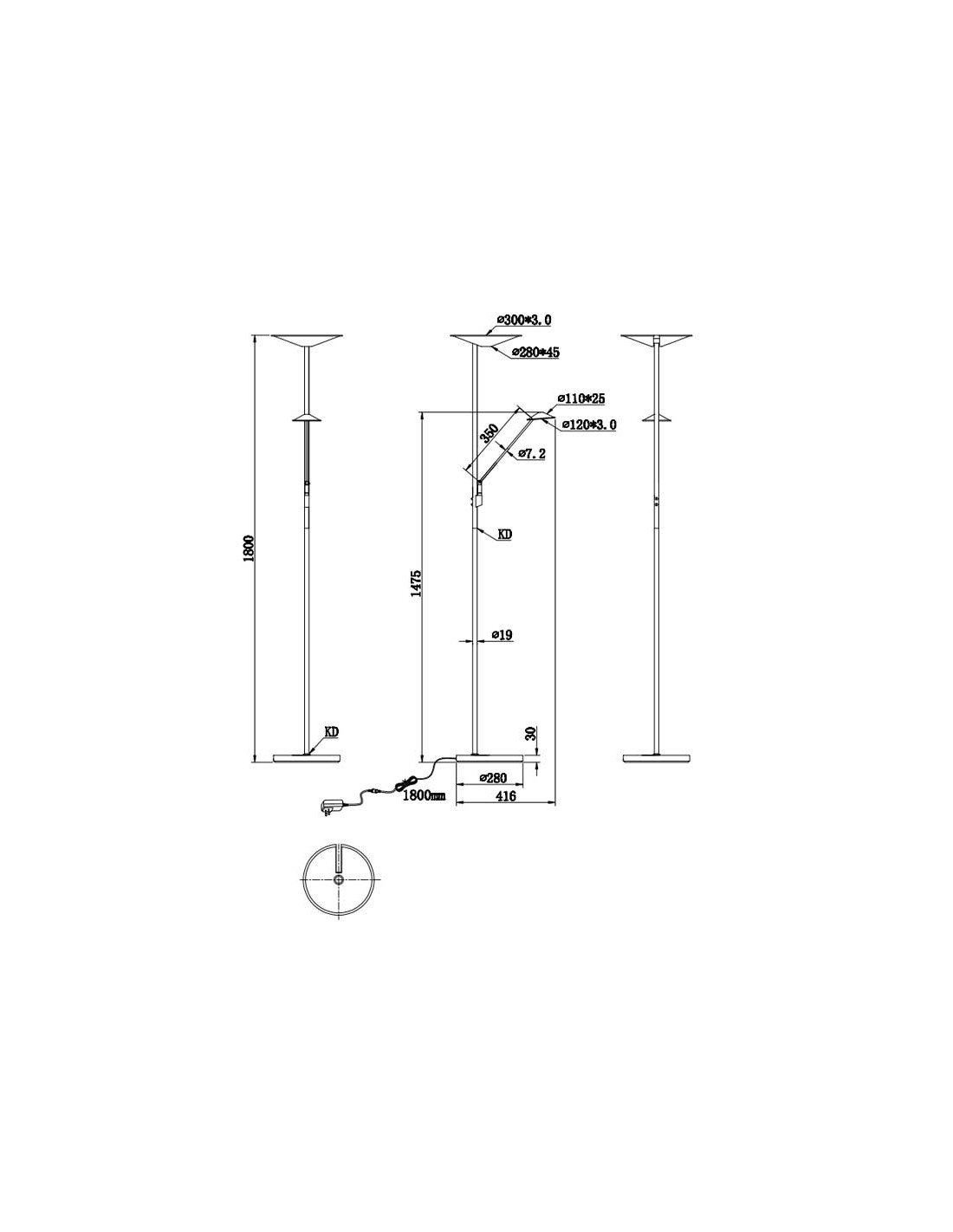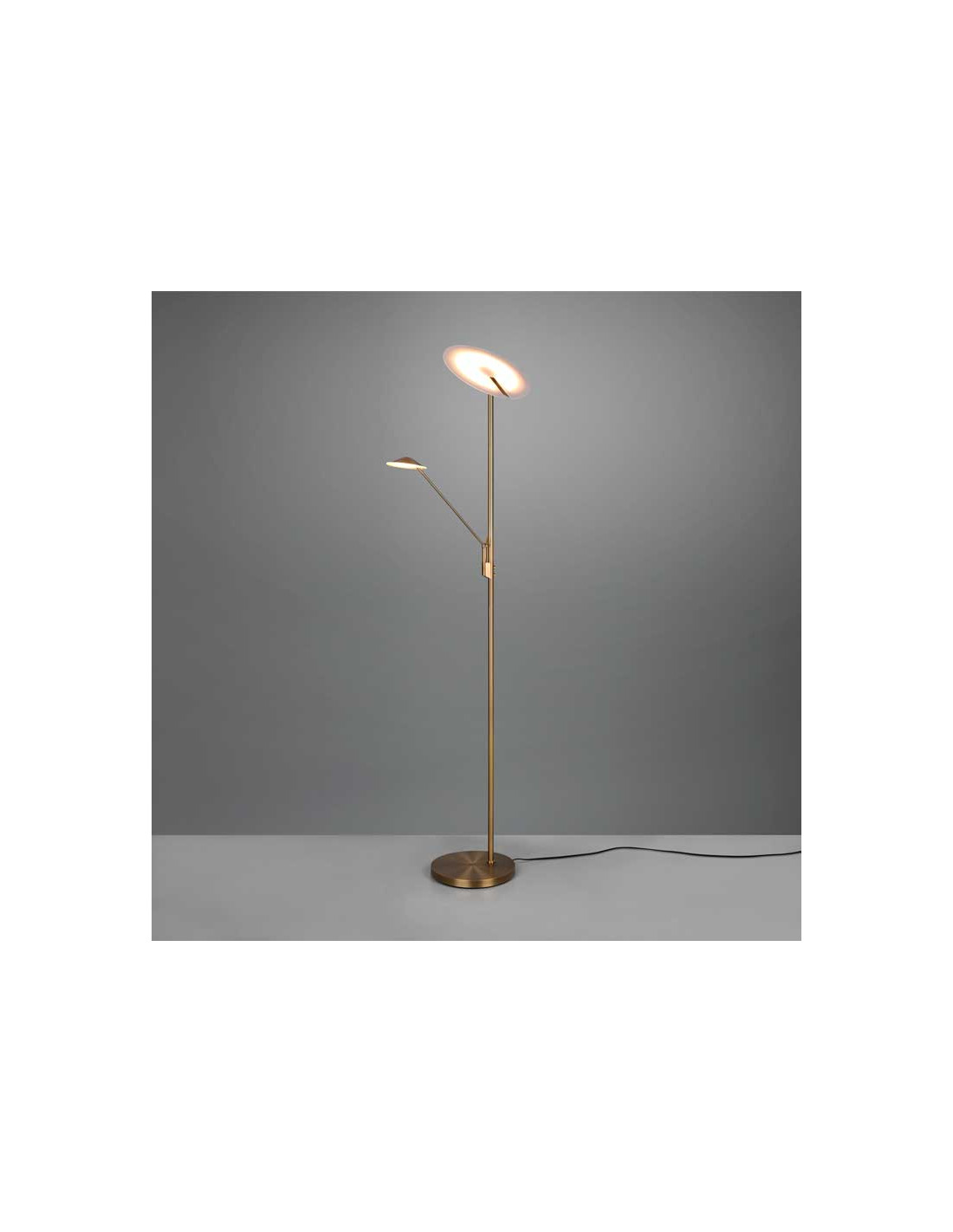 Lámpara de pie que dispone de varias fuentes de luz, que se pueden encender y apagar de manera independiente. Regulador con sensor. Esta lámpara se puede regular de forma progresiva mediante un sensor de atenuación integrado. Incluye una luz principal con LED integrado que ofrece 30W y 2800Lm con temperatura de color regulable. Además de una de lectura con 6.5W y 560Lm. Ambas con temperatura de color regulables entre los 2500K y los 4000K.