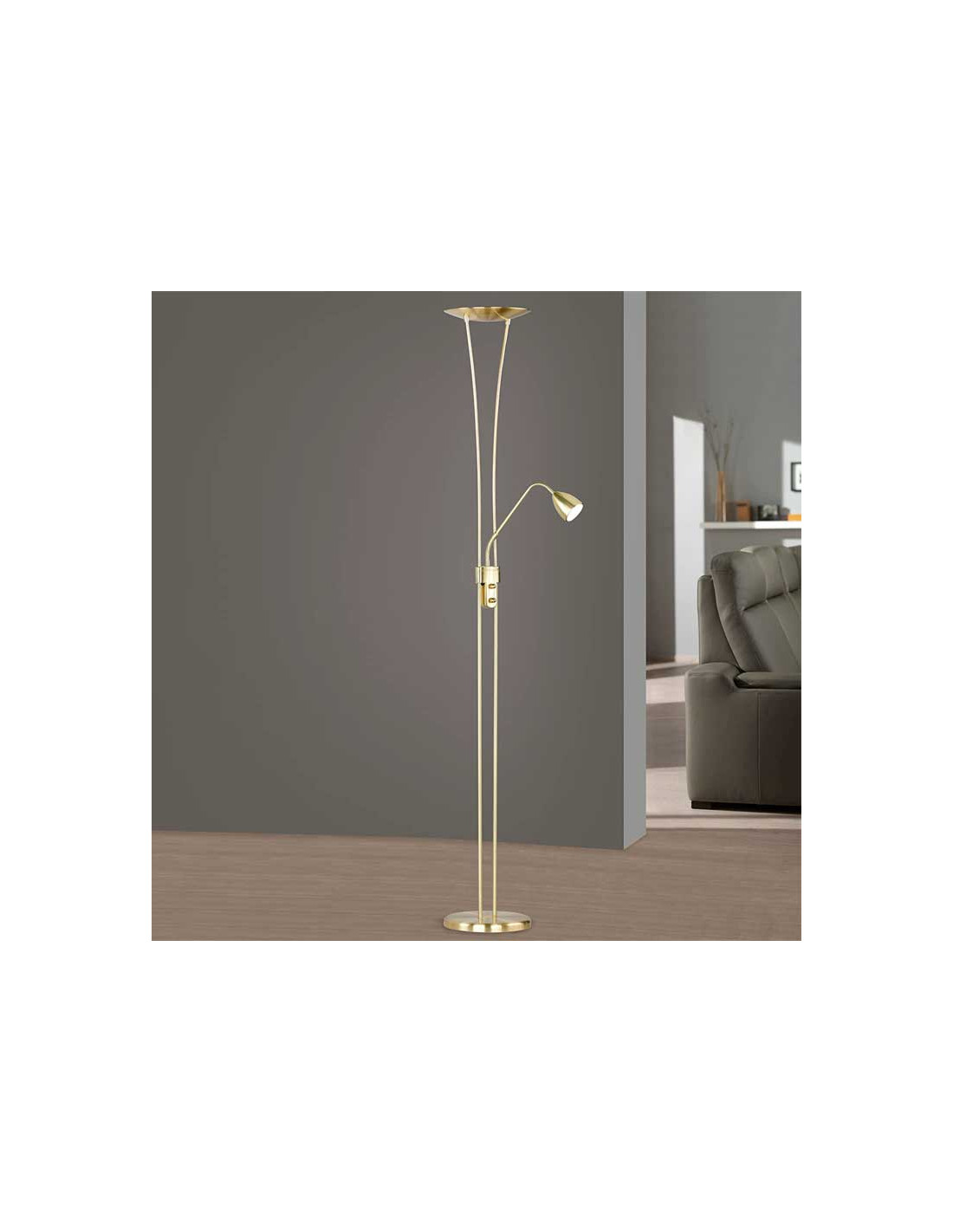 Lámparas con aislamiento adicional o reforzado. No tiene conexión con el conductor de seguridad. La lámpara dispone de una fuente de luz principal de 20W y 2000lm y una de lectura de 5W y 500lm en blanco cálido de 3000K. Éstas luces se pueden encender y apagar de manera independiente. Cuentan con regulador con sensor. Además, se pueden regular de forma progresiva mediante un sensor de atenuación integrado. Dimensiones: 25 x 40 x 180 cm Peso: 5.18 kilogramos