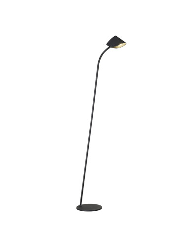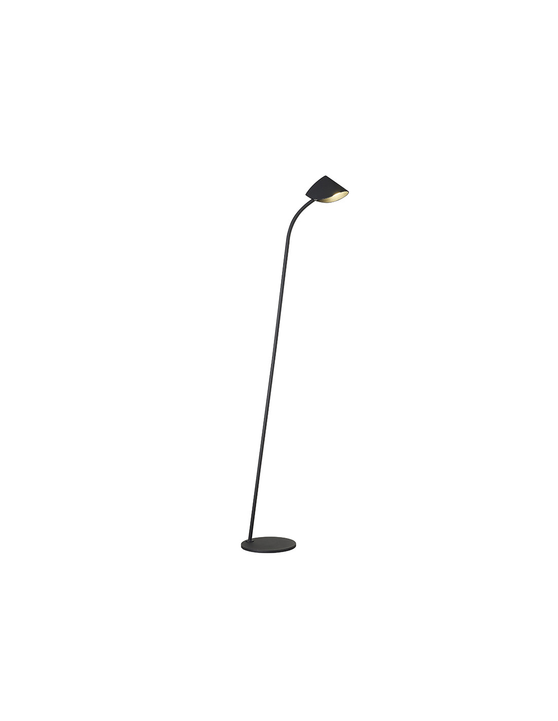 Lámpara de pie de la familia CAPUCCINA fabricada en Aluminio y hierro con acabado en Negro. Con LED integrado de 8,5W de potencia que ofrecen 600lm. en 3000K Blanco Cálido. Etiqueta Energética F.