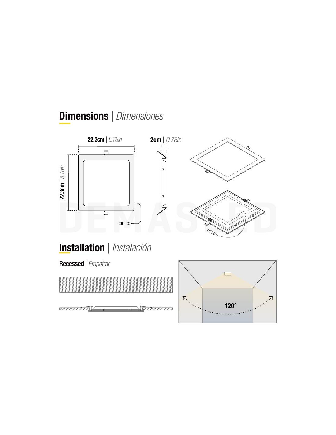Panel LED cuadrado blanco, 22.3x22.3cm 18W 1440lm, empotrar