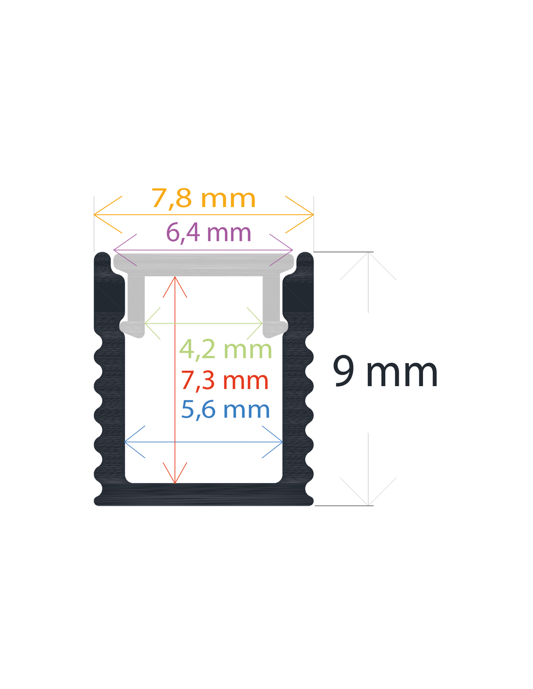 Perfil extrafino 7.8mm x 9mm de aluminio anodizado de superficie 2m (Pedido mínimo de 10 unidades)