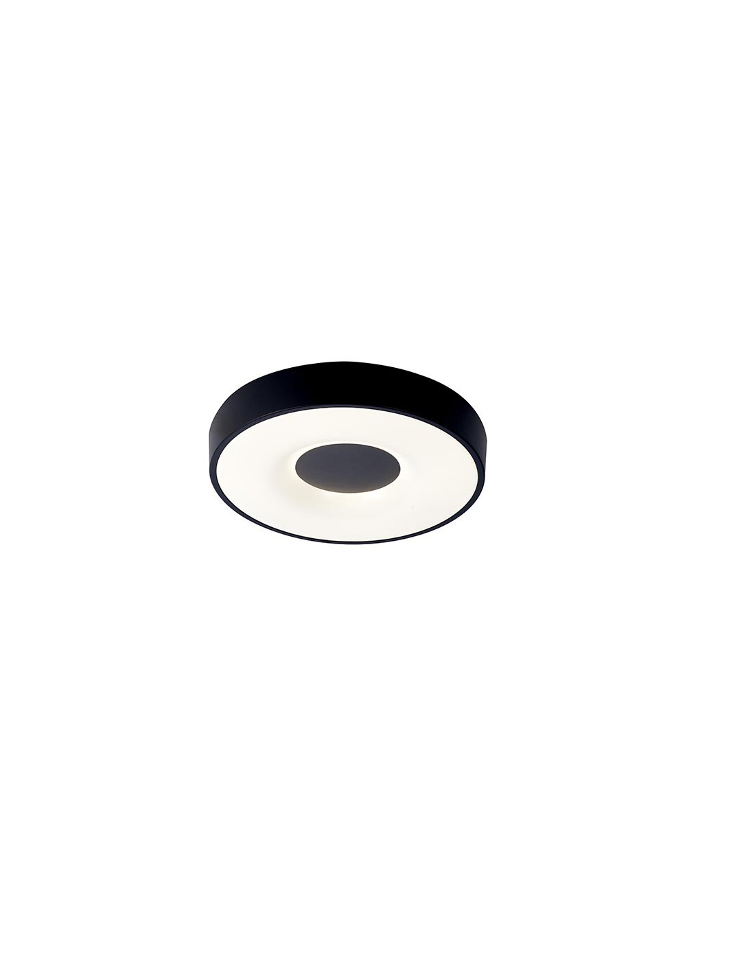 Plafón de techo de la familia COIN fabricado en Hierro, acrílico y PS. Con LED integrado de 56W de potencia que ofrecen 2500lm. en 2700K-5000K. Dimable. Incluye mando a distancia. Etiqueta Energética F.