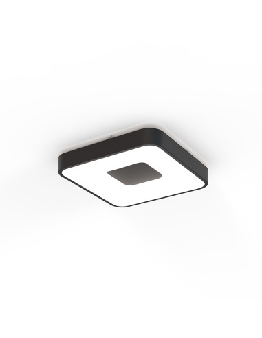 Plafón de techo de la familia COIN fabricado en Hierro, acrílico y PS. Con LED integrado de 56W de potencia que ofrecen 2500lm. en 2700K-5000K. Dimable. Incluye mando a distancia. Etiqueta Energética F.