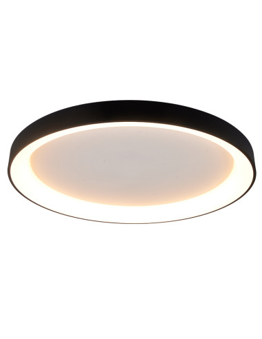Plafón de techo de la familia NISEKO II fabricado en Acero y Acrílico. Con pantalla Acrílico Blanco. Con LED integrado de 75W de potencia que ofrecen 5000lm. en 2700K-5000K. Dimable. Incluye mando a distancia. Etiqueta Energética E.