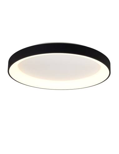 Plafón de techo de la familia NISEKO II fabricado en Acero y Acrílico. Con pantalla Acrílico Blanco. Con LED integrado de 62W de potencia que ofrecen 4700lm. en 2700K-5000K. Dimable. Incluye mando a distancia. Etiqueta Energética E.