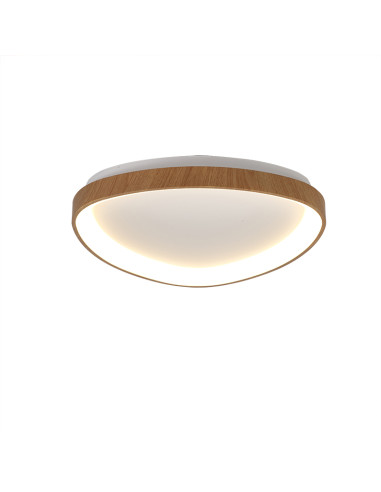 Plafón de techo de la familia NISEKO II fabricado en Acero y Acrílico. Con pantalla Acrílico Blanco. Con LED integrado de 42W de potencia que ofrecen 2500lm. en 2700K-5000K. Dimable. Incluye mando a distancia. Etiqueta Energética E.