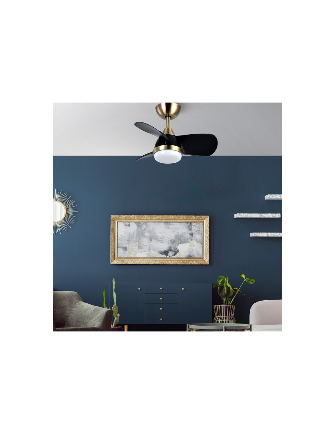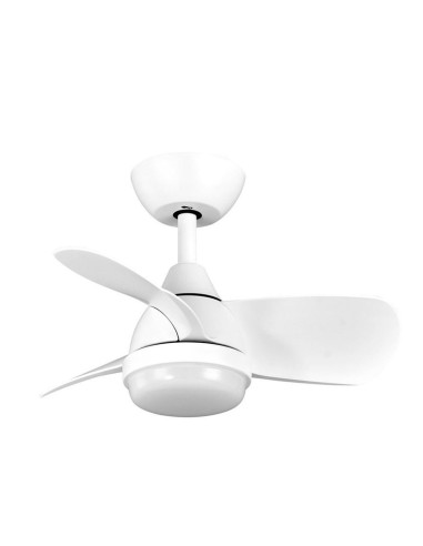 Ventilador DC serie PIRDO realizado en metal, ABS y policarbonato con tres aspas. Motor DC. Tiene seis velocidades ajustables. Tecnología LED INTEGRADA con una potencia de 24W, con 3 TEMPERATURAS DE LUZ (3000-4500-6000K), luz cálida, blanco natural y blanco frío, y 2400 lúmenes. De diseño moderno, con líneas sencillas, pero muy decorativo por su estructura compacta, ideal para dormitorios y habitaciones juveniles. Su medida es de 35/47x60x60 centímetros, con dos medidas de tija para instalar a diferentes alturas. Control de aire verano o invierno. MANDO A DISTANCIA INCLUIDO con MEMORIA DE COLOR y TEMPORIZADOR 1/2/4/8 H. Modelo también disponible en blanco/haya cuero/negro, negro/marrón y en negro.