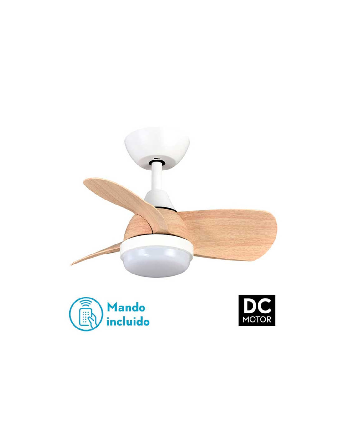 Ventilador DC serie PIRDO realizado en metal, ABS y policarbonato con tres aspas. Motor DC. Tiene seis velocidades ajustables. Tecnología LED INTEGRADA con una potencia de 24W, con 3 TEMPERATURAS DE LUZ (3000-4500-6000K), luz cálida, blanco natural y blanco frío, y 2400 lúmenes. De diseño moderno, con líneas sencillas, pero muy decorativo por su estructura compacta, ideal para dormitorios y habitaciones juveniles. Su medida es de 35/47x60x60 centímetros, con dos medidas de tija para instalar a diferentes alturas. Control de aire verano o invierno. MANDO A DISTANCIA INCLUIDO con MEMORIA DE COLOR y TEMPORIZADOR 1/2/4/8 H. Modelo también disponible en blanco/haya cuero/negro, negro/marrón y en negro.